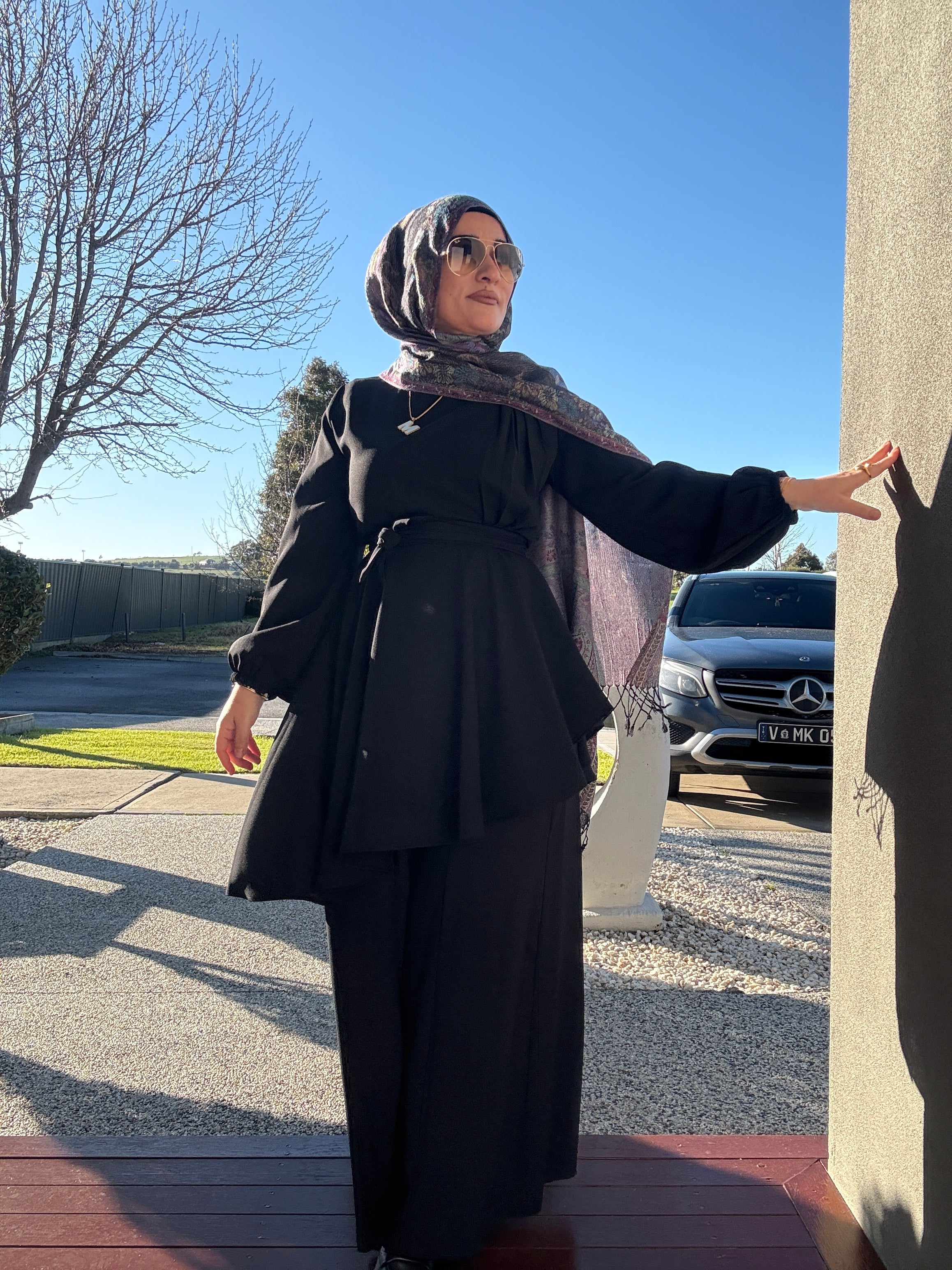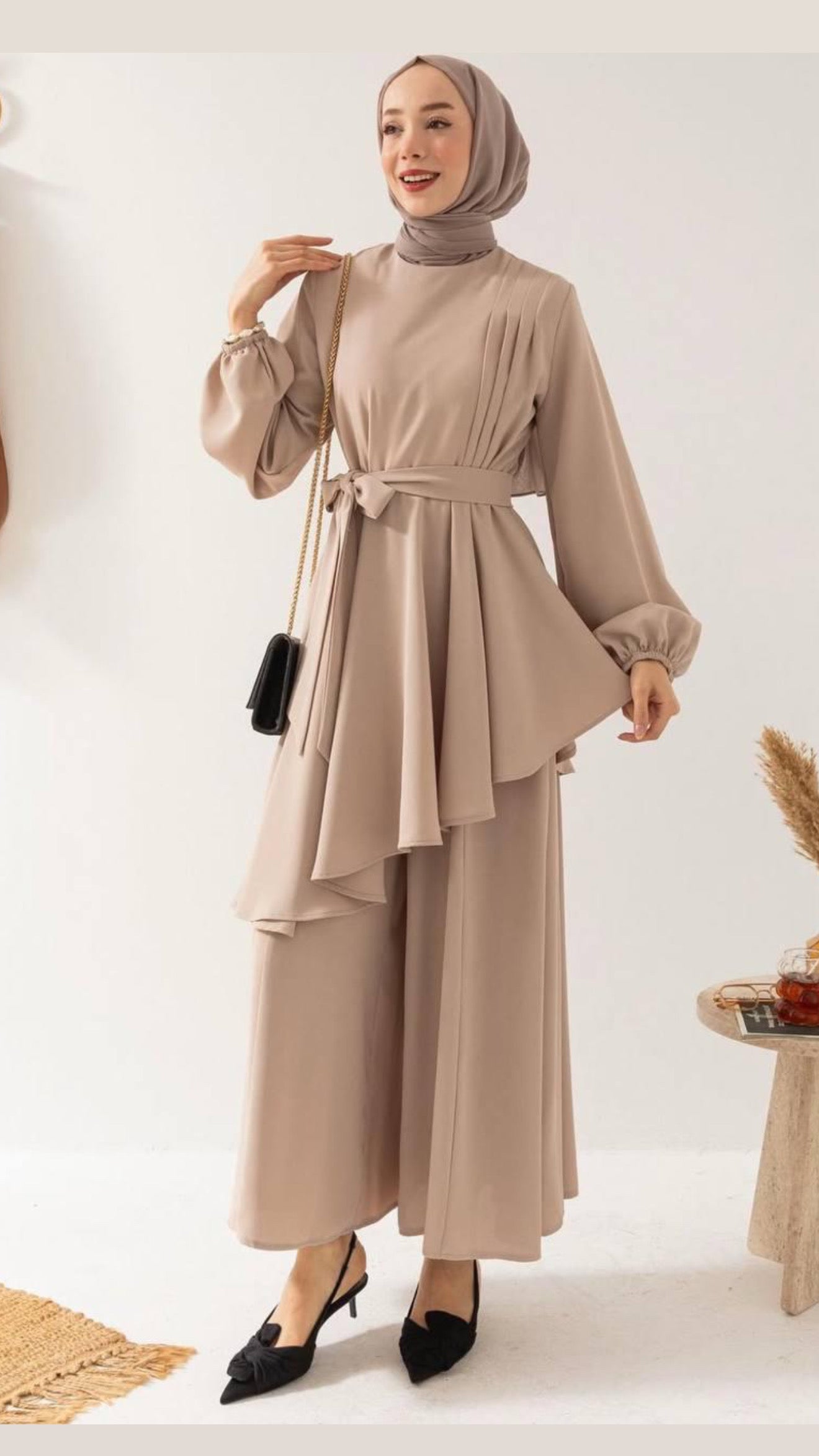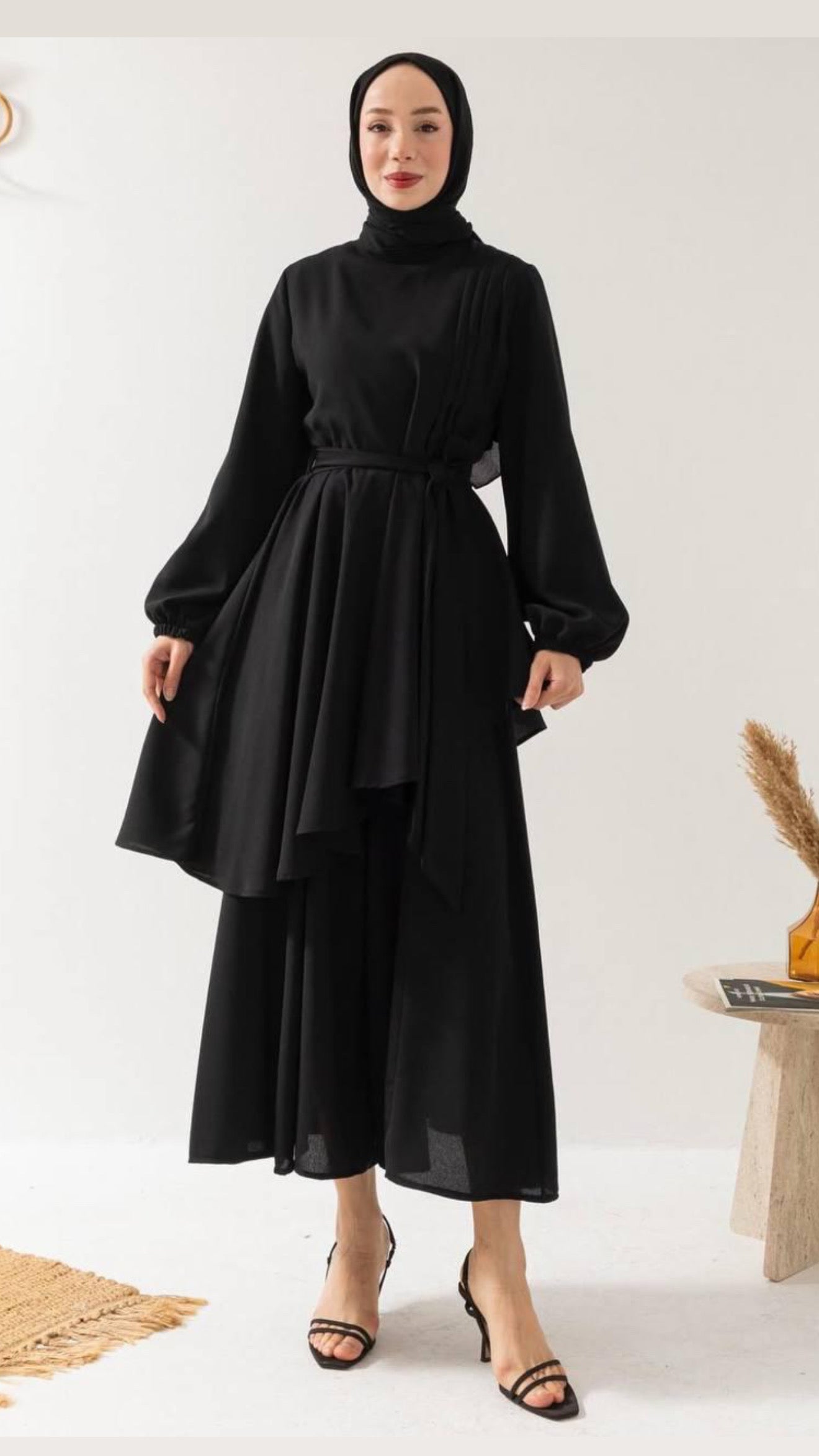 Description: The Ace Set is a stunning set. The top is an asymmetric top, has cuffed wrists and comes with a belt. The pants have an elastic waist and is very flowy.