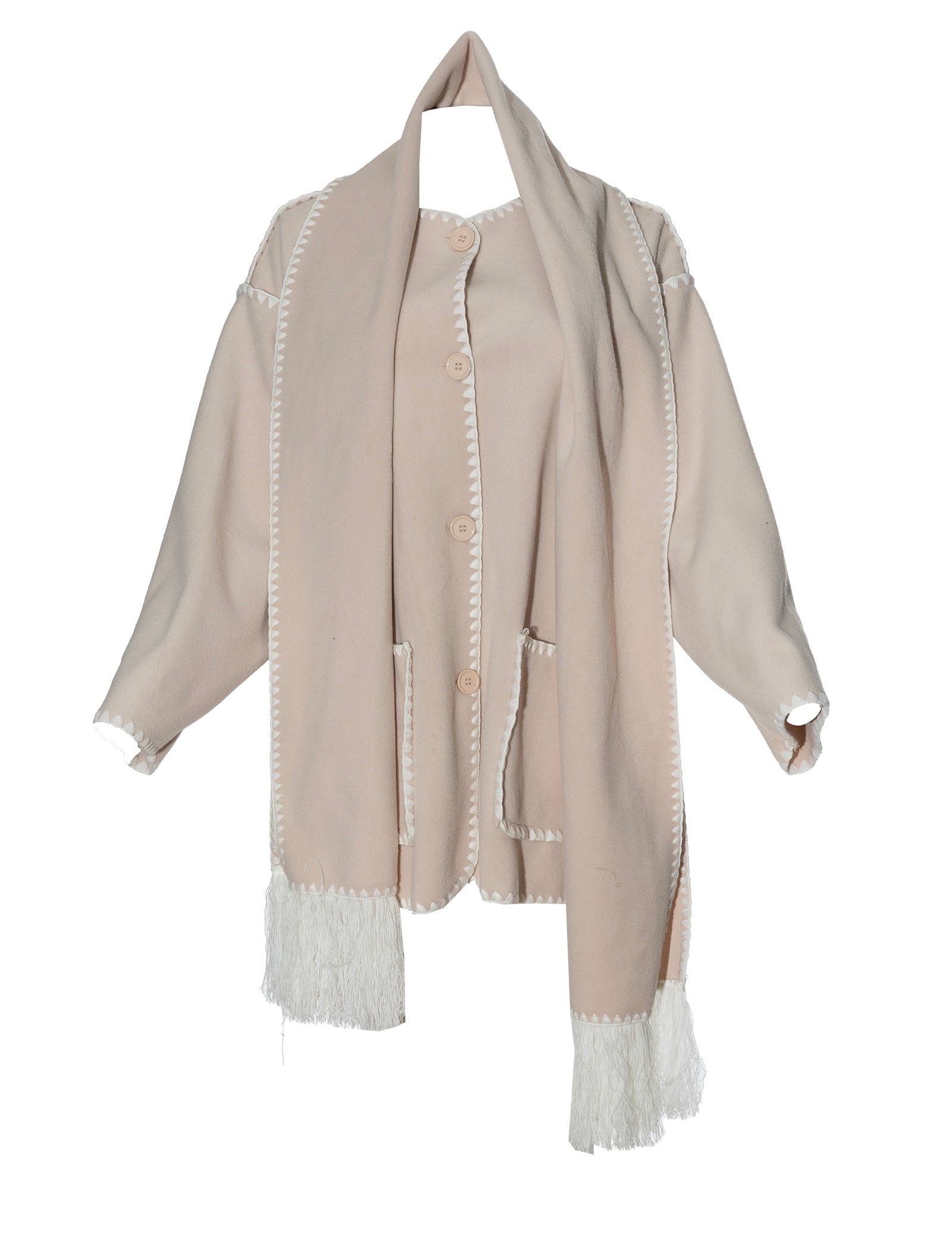 Description: The Ayani Jacket is a very cute layering jacket for winter/autumn. It has three different colours and white zigzag outer trimming. Has two big front pockets, comes with a neck scarf, full buttons and is an oversize fit.