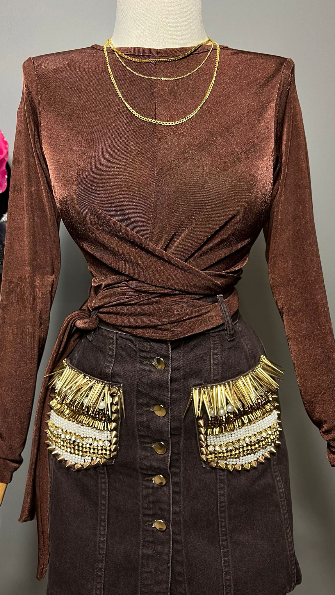 Description: The Beck Top is a plain top to pair up with skirts and pants. Has a tie up waist and is a stretchy material.