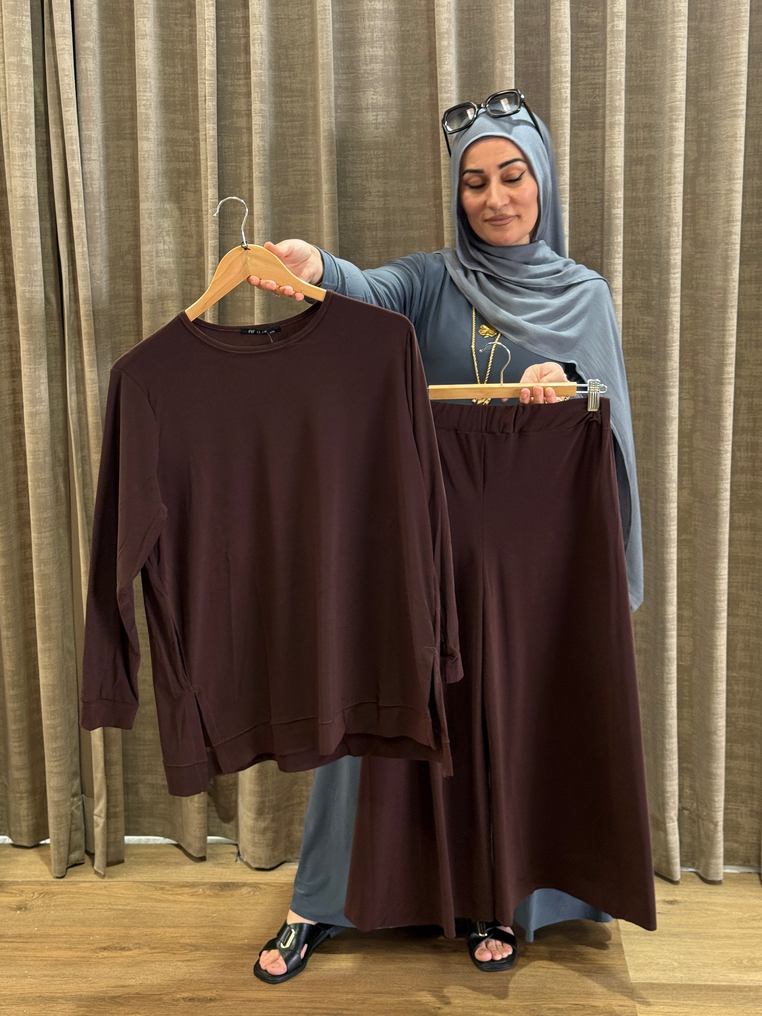 Description: The Binaz Lycra Set is a gorgeous set. The top is straight cut and features cuffed wrists. The pants are also straight cut and include an elastic waist.