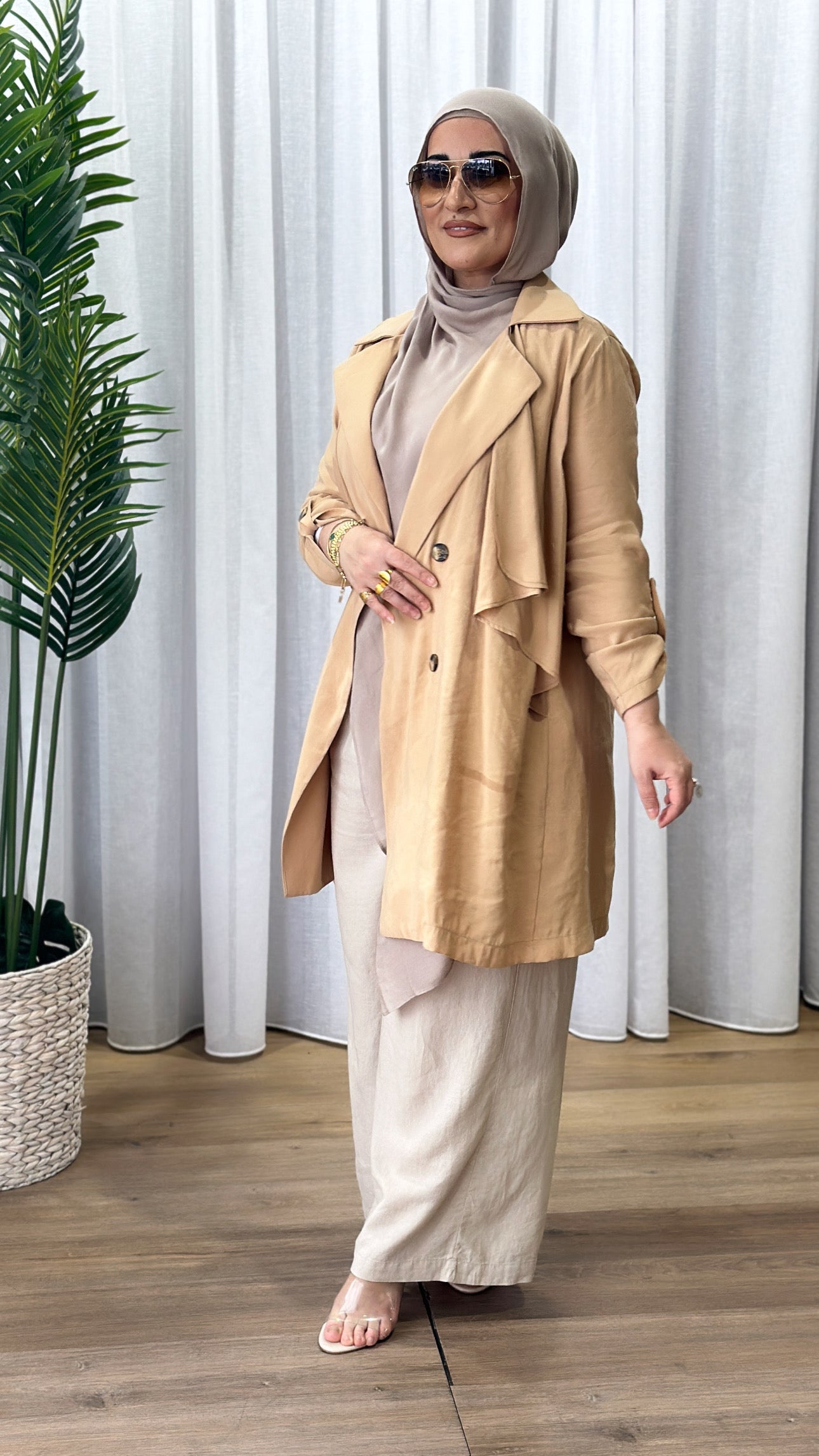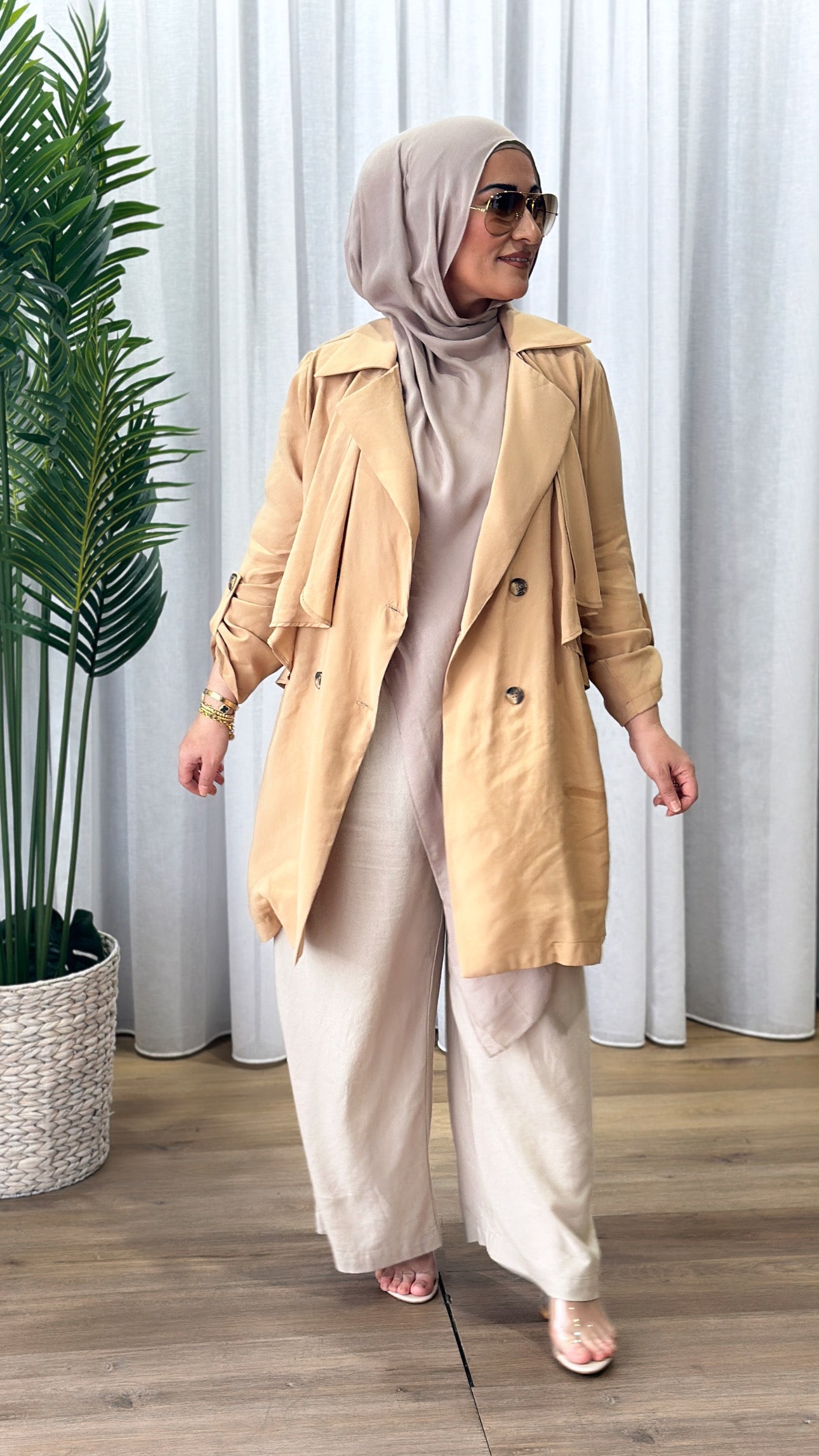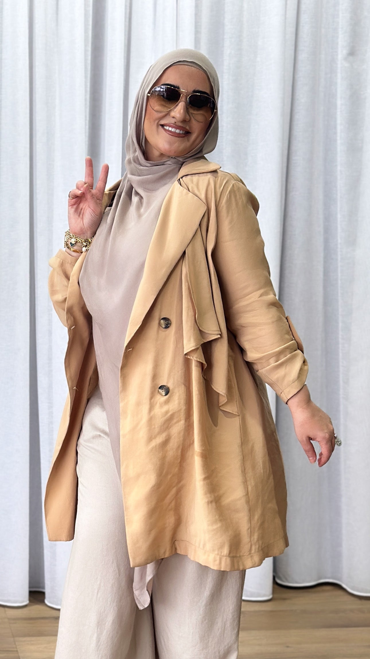 Description: The Carla Trench is your classic trench. However, it is a tencil like material and more lightweight than a normal trench coat.