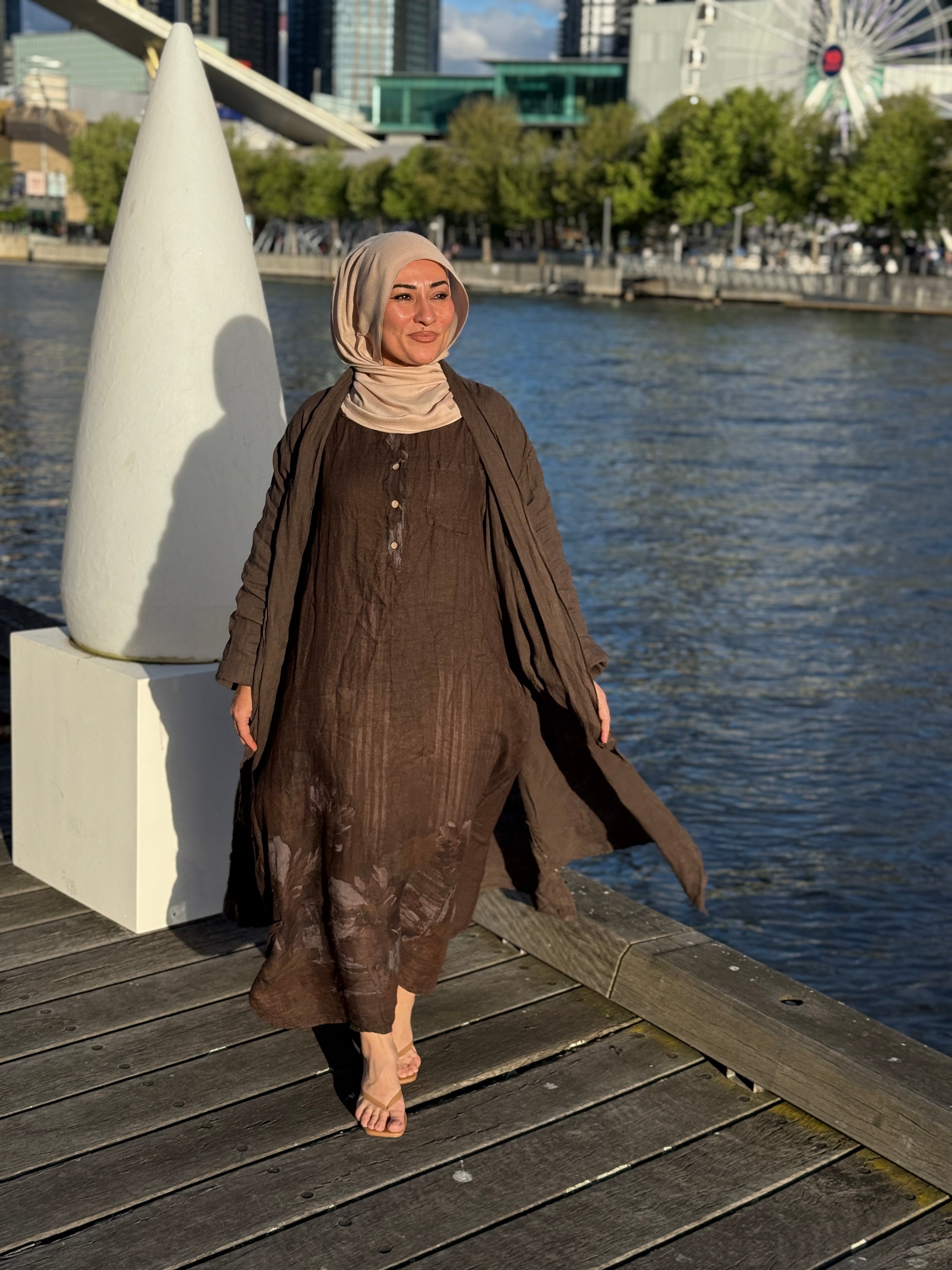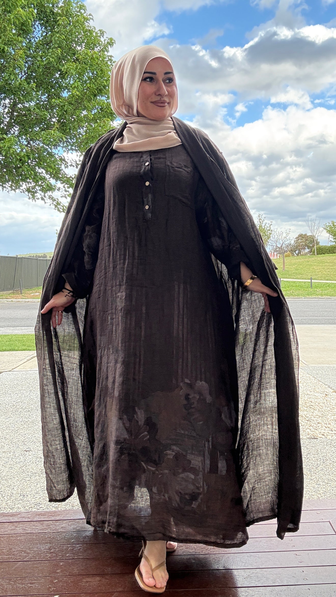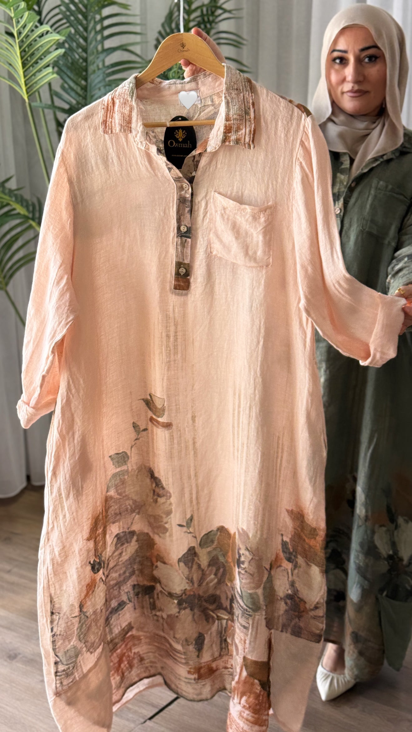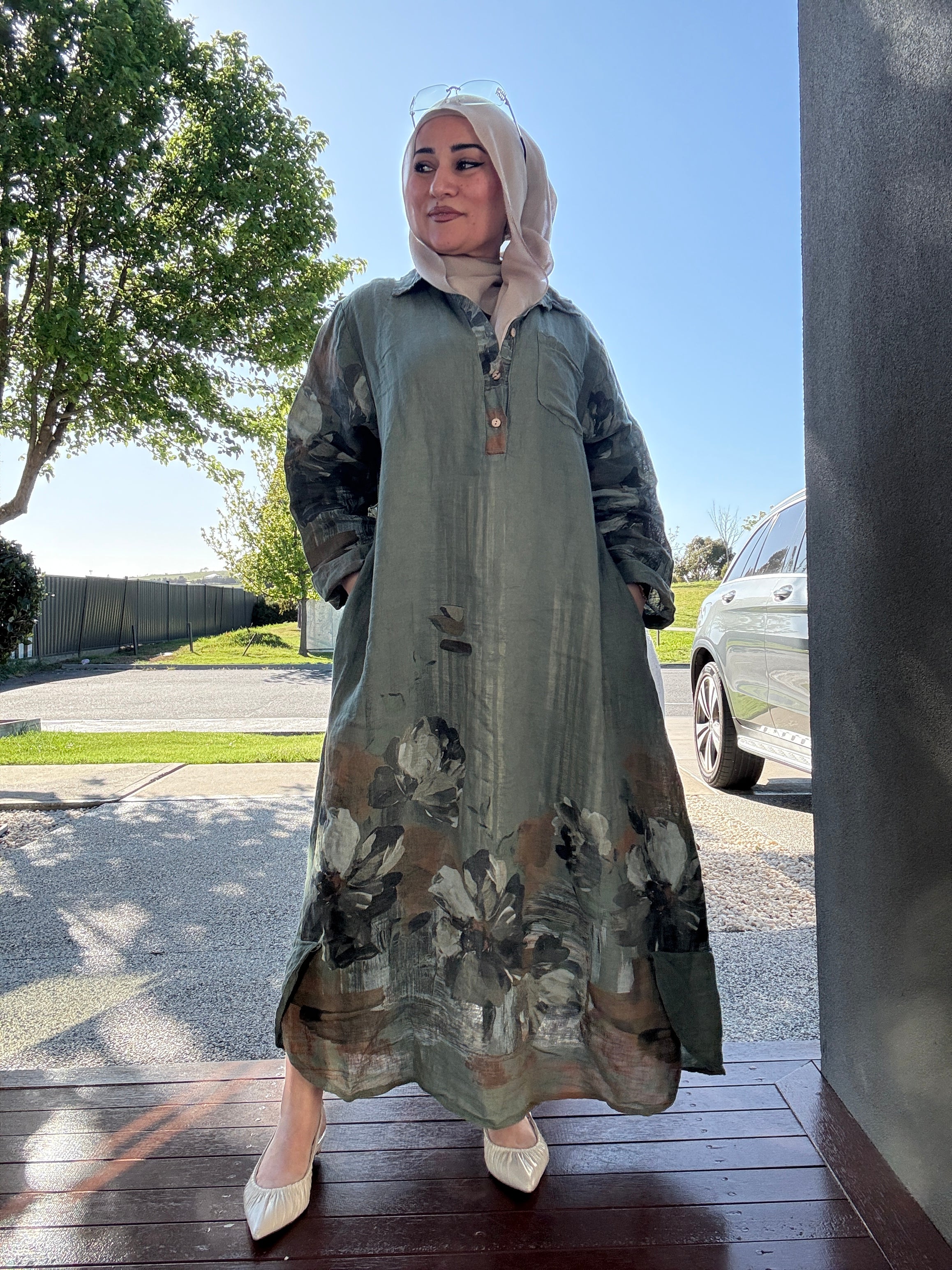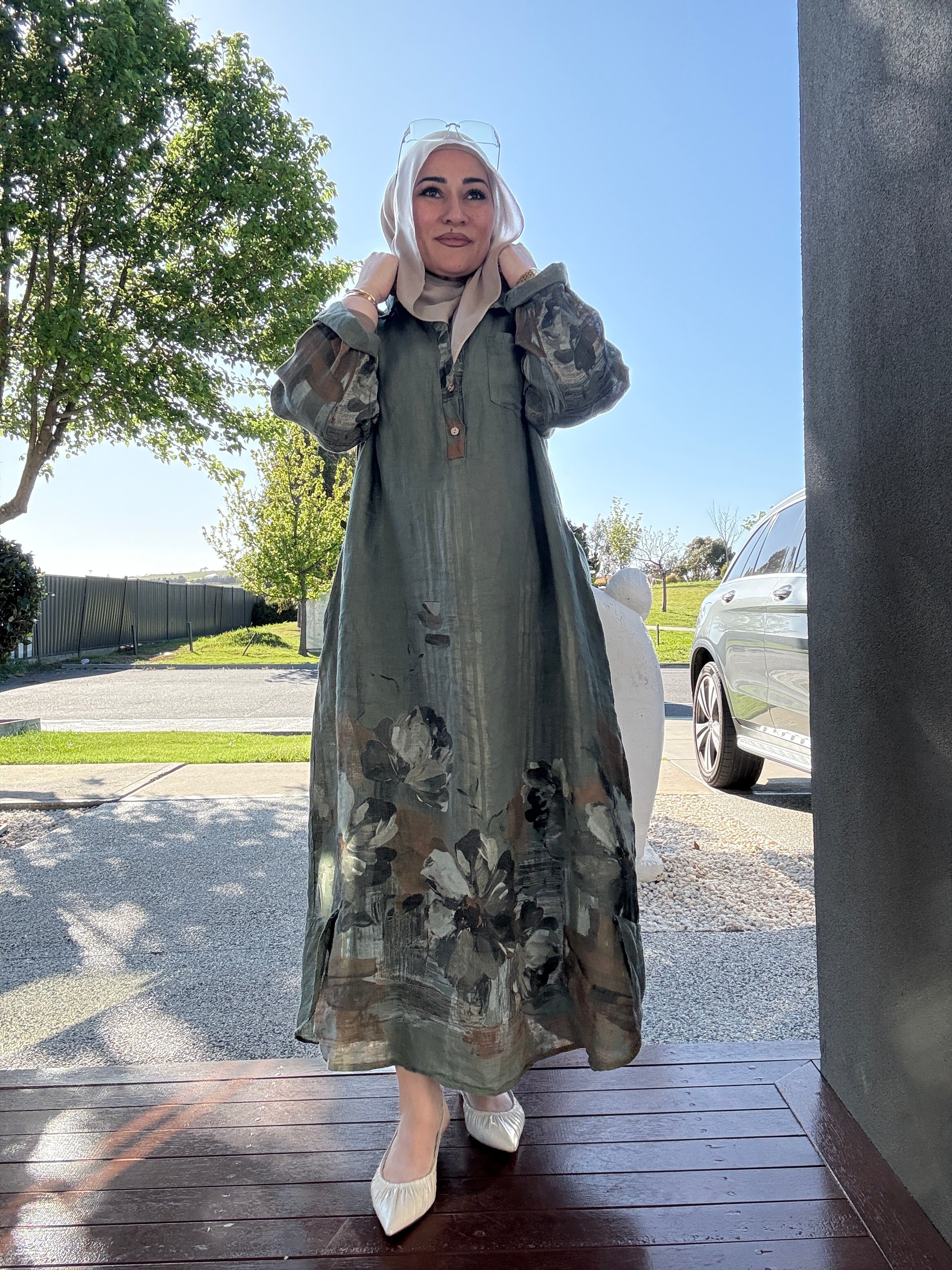 Description: The Deniz Dress is a must haves with the warmer weather approaching. It has a v neck collar, drop shoulder for the extra room and comfort, is a loose fit, and breathable.
