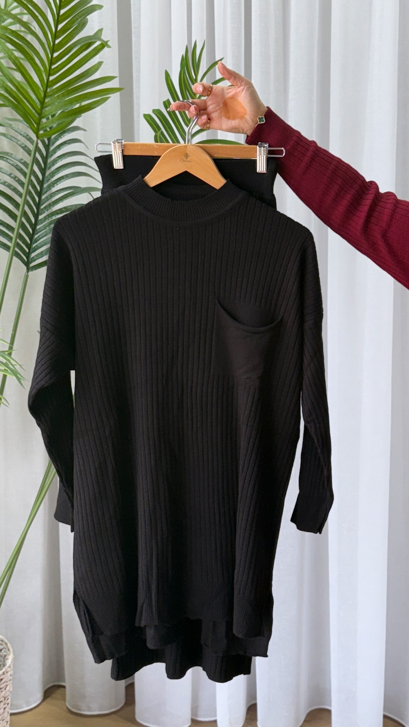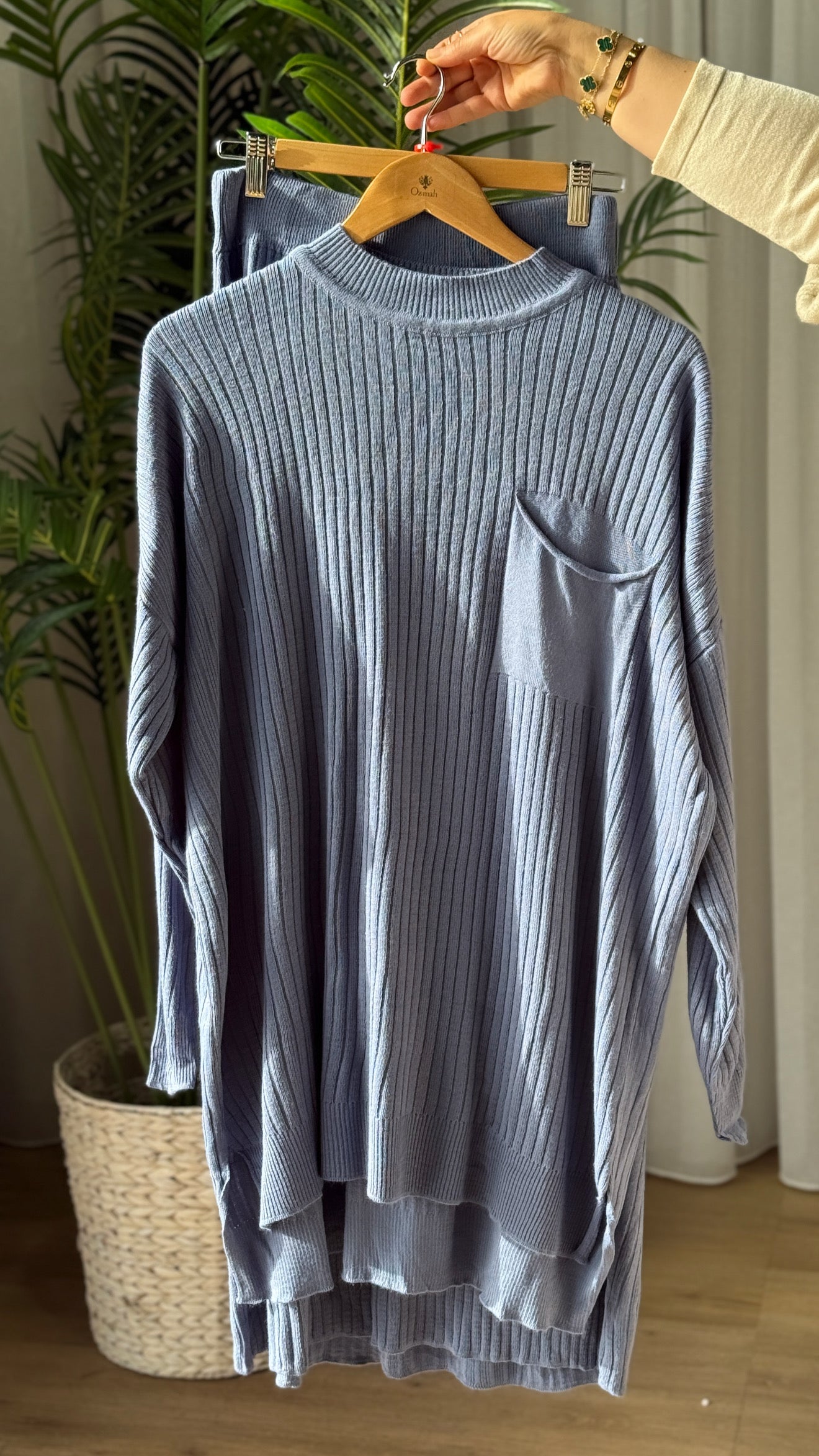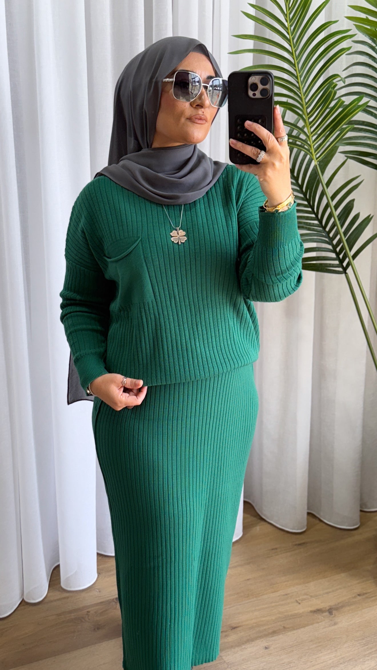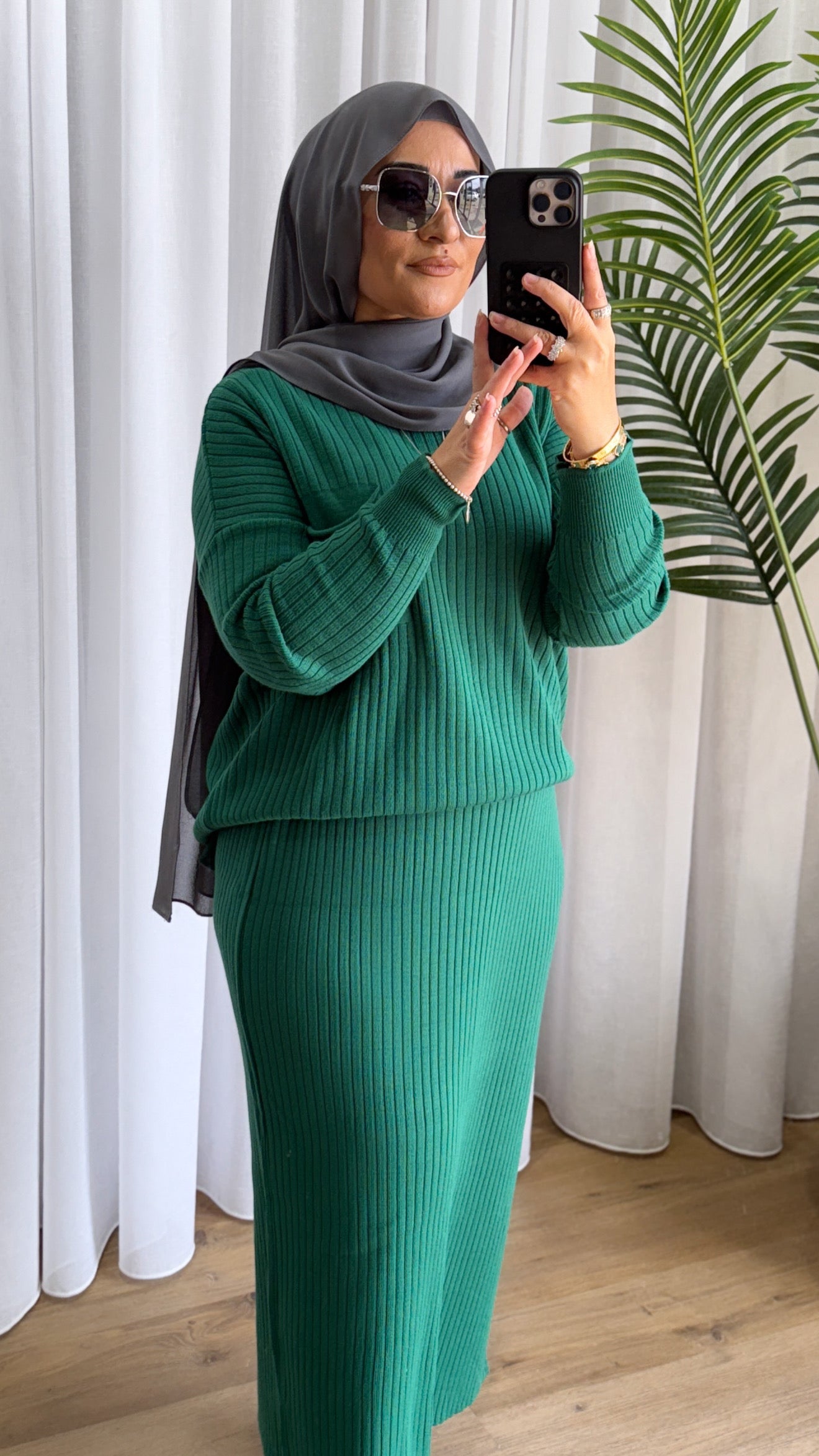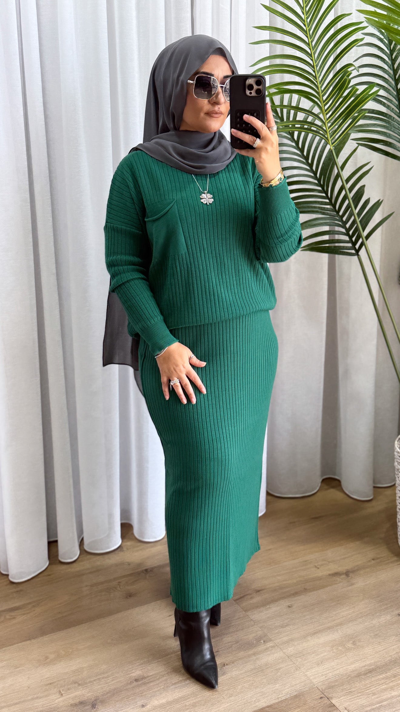 Description: The Ece Set is a stunning two-piece set. The top is a wool top, has a slight loose fit. The Skirt have an elastic waistband and is a straight cut.