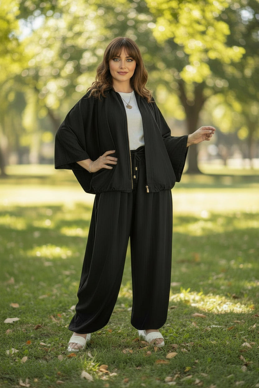 Description: The Genie Set Top is the matching top for the Genie Set Pants. It is a loose, breathable top which is generously cut with balloon sleeves. It has a full length.