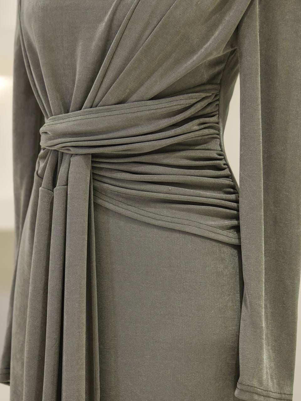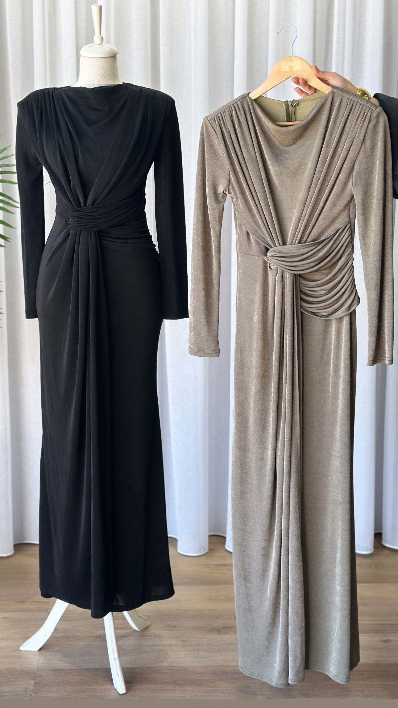 Description: The Georgia Dress is a stunning formal dress. It is a tight fit with knot detailing on the front.