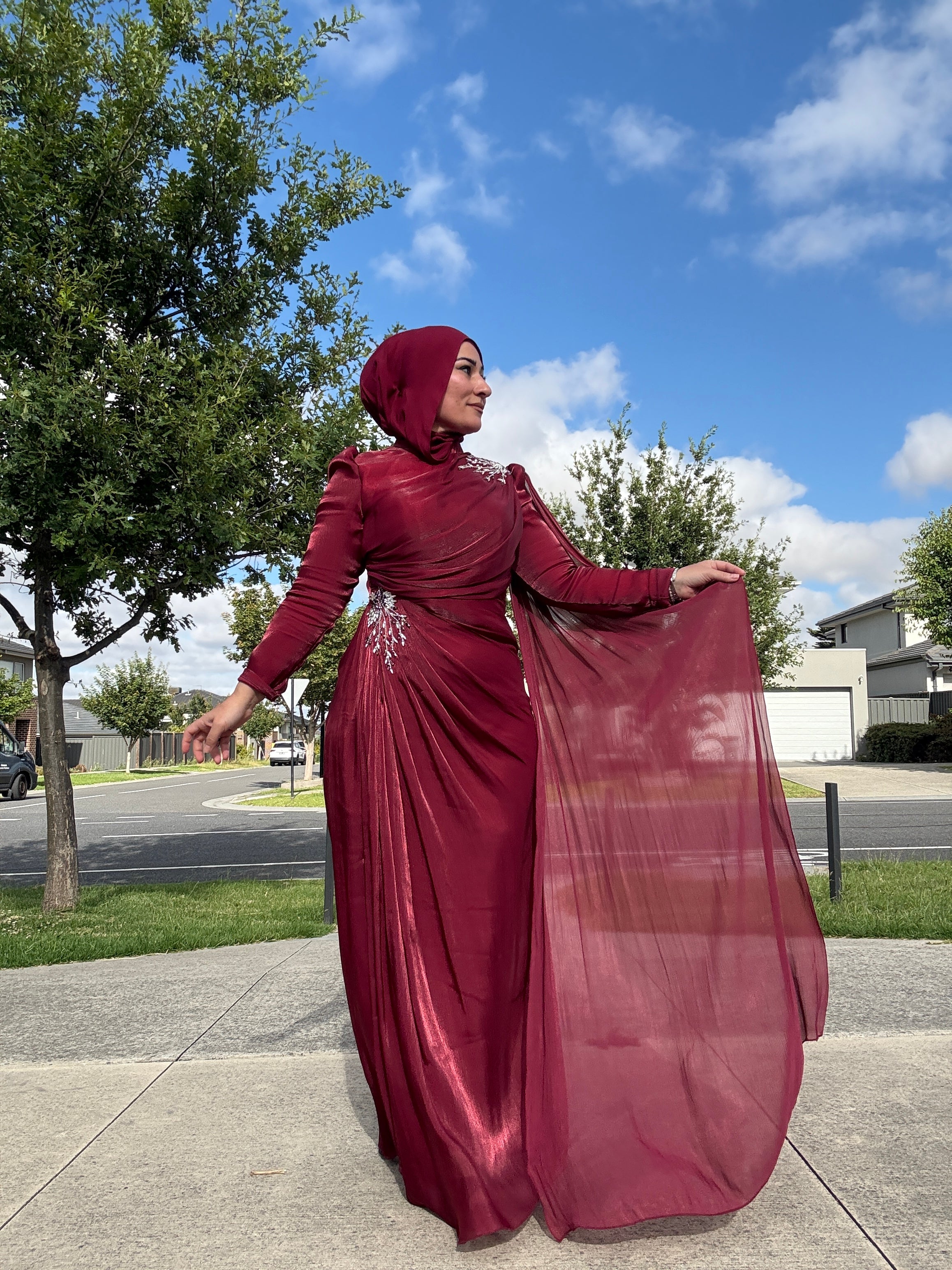 In the interests of hygiene, all of our accessories (including embroidered hijab caps, embroidered hijab/head bands, bridal scarves (hijabs), hijab pins and all jewellery) have a strict no refunds/exchange policy. Please ensure you have carefully read all product descriptions, fabric compositions and measurements to help you make an informed decision before placing your order. For additional product information please contact or email us.