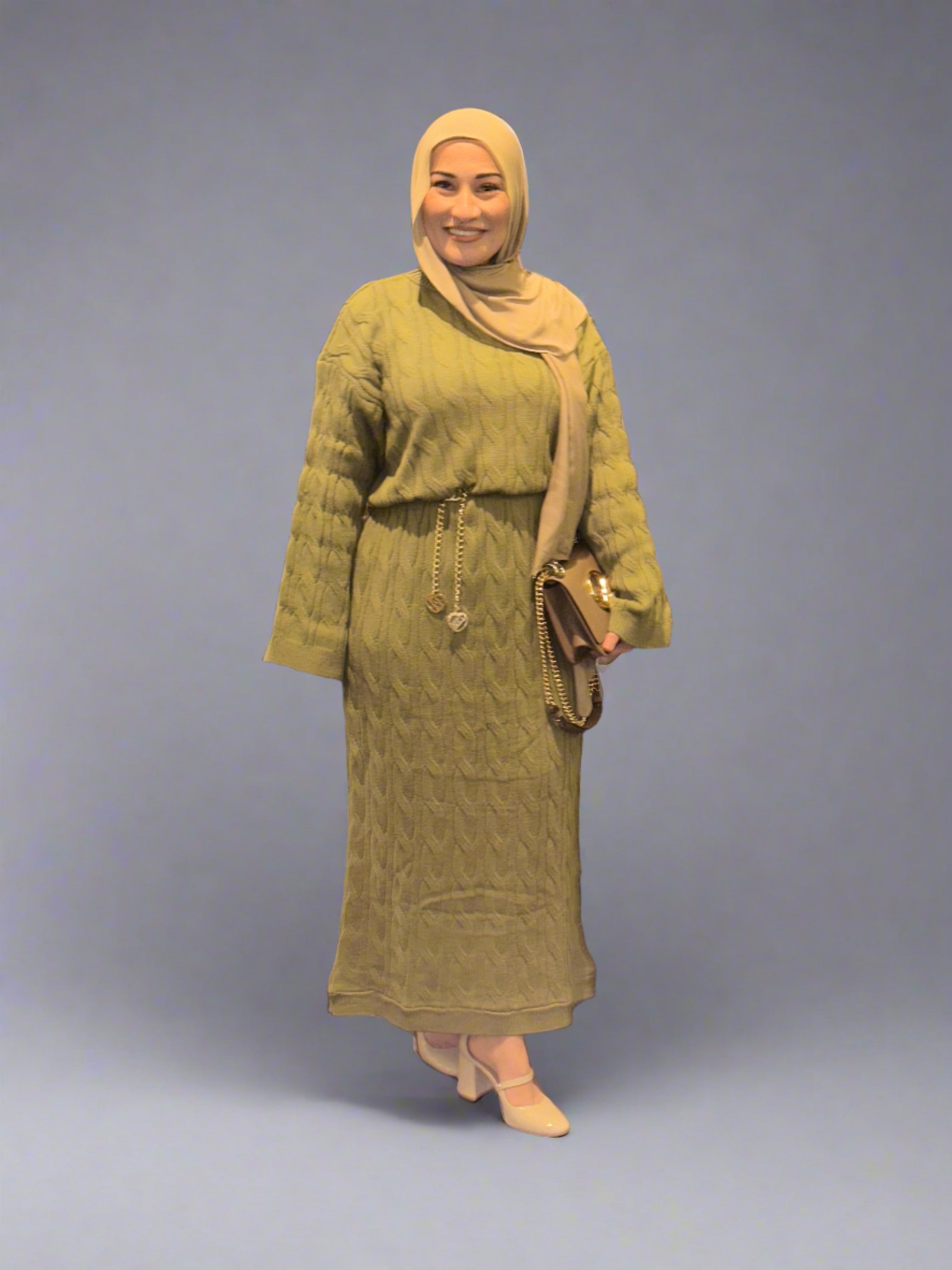 Description: The Linda Dress is an oversize fit dress perfect for the cold days and layering. It has loose sleeves and has a plait design.