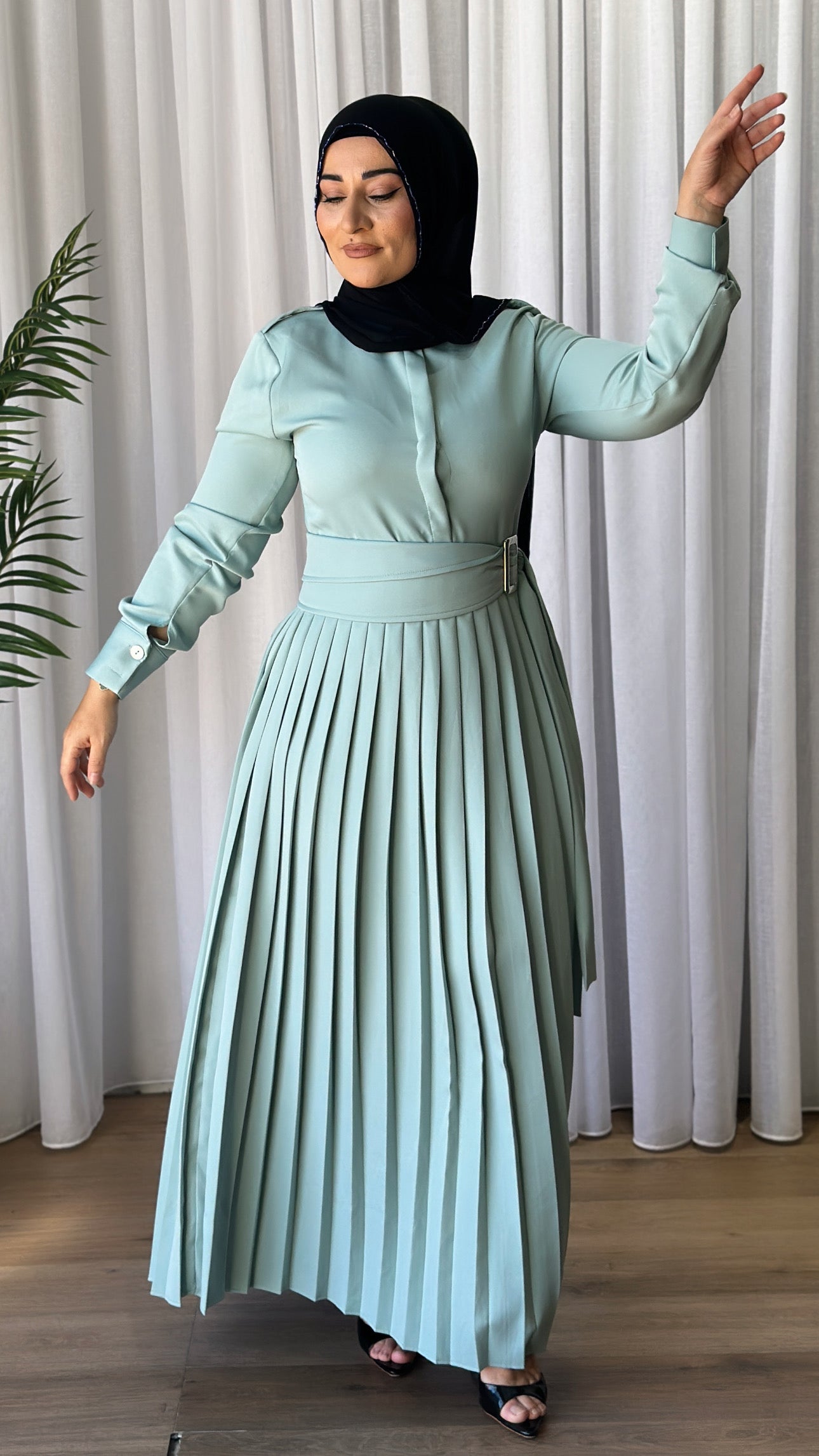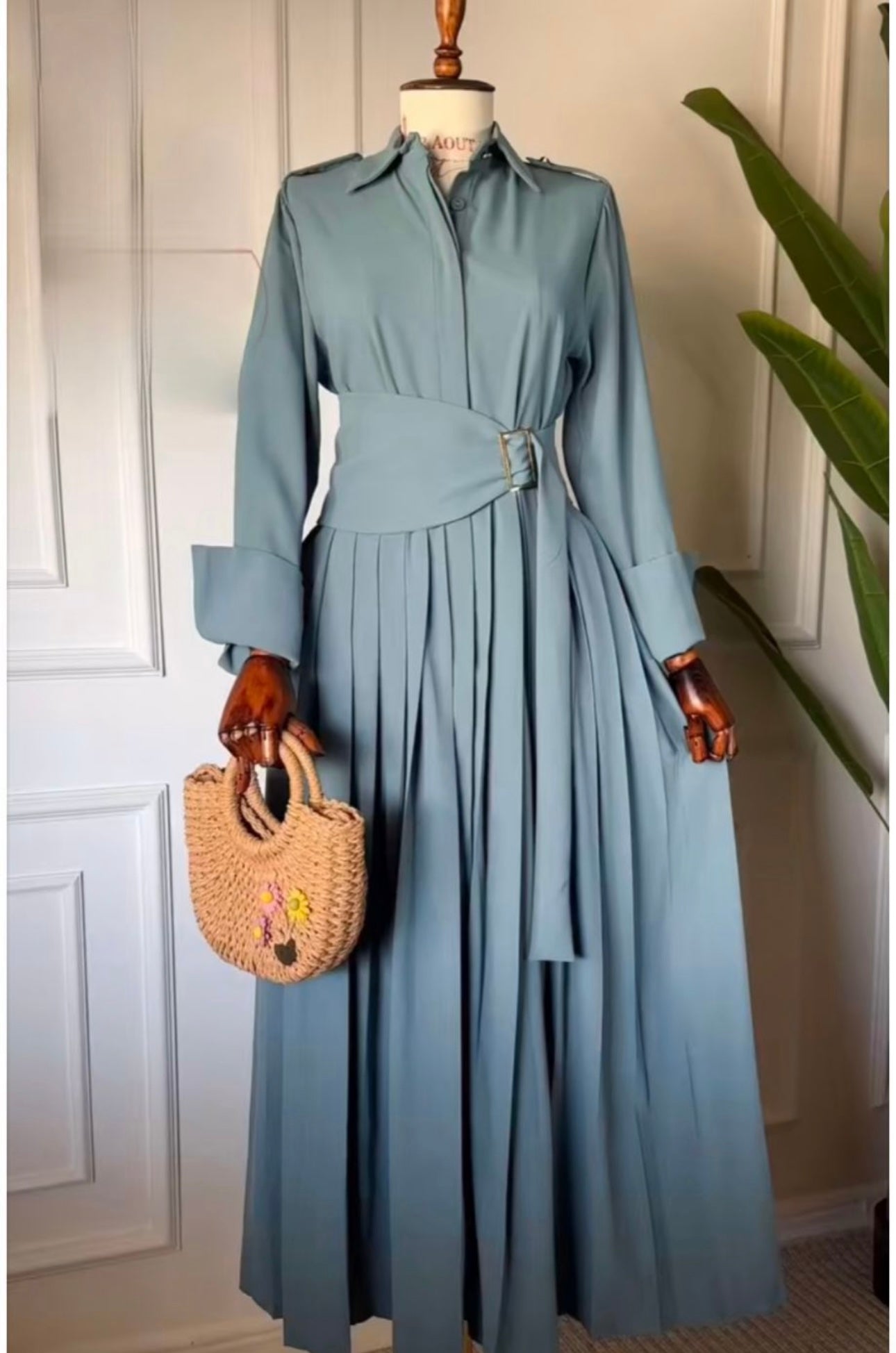 Description: The Loraine Dress is a stunning dress. It is a pleated dress, has half buttons, button cuff wrists and is collared. Also has an invisible side zip and is collared.