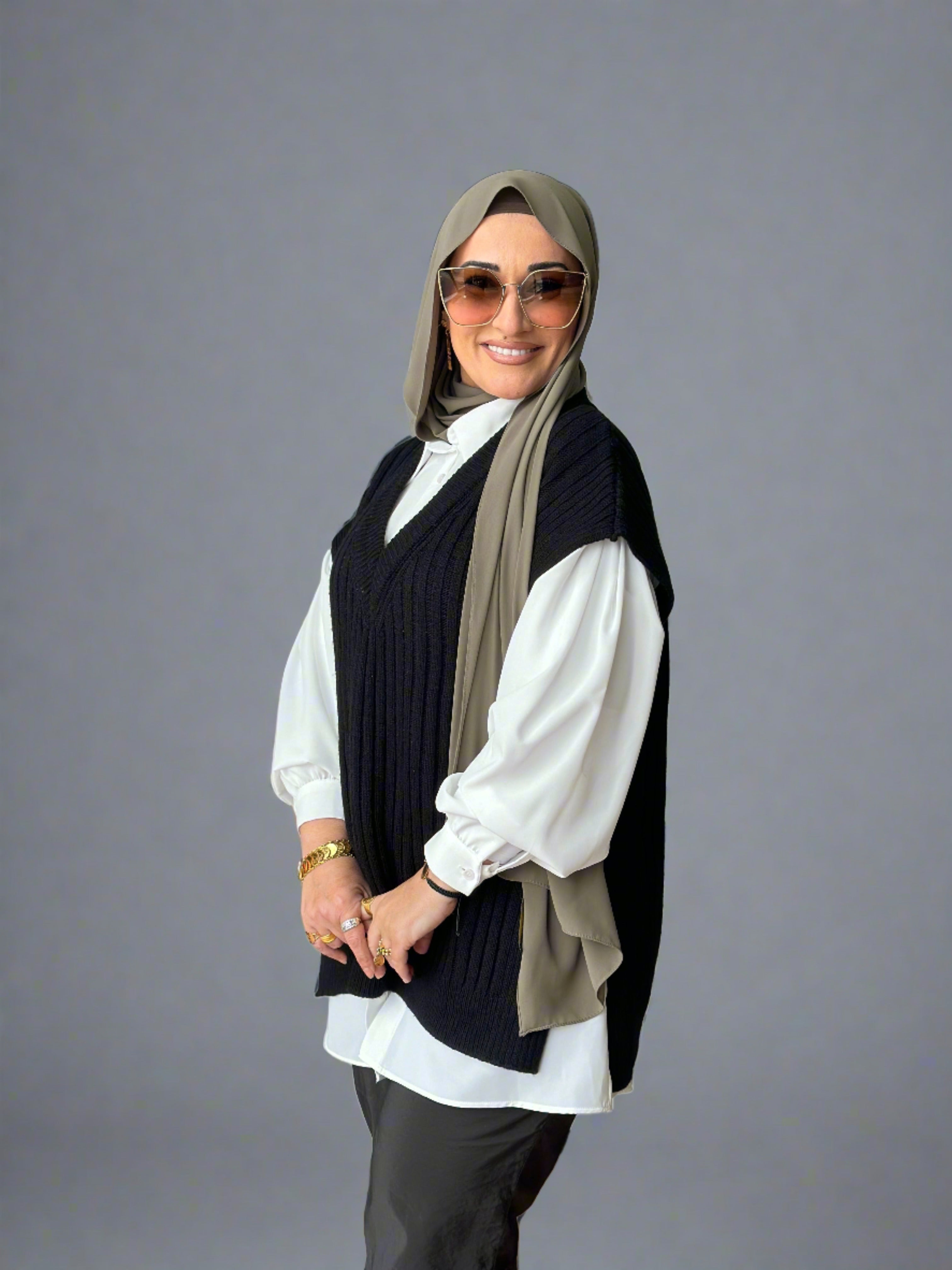 Description: Wool Blend, Vest Poncho style Top. Suitable For Most Body Types.