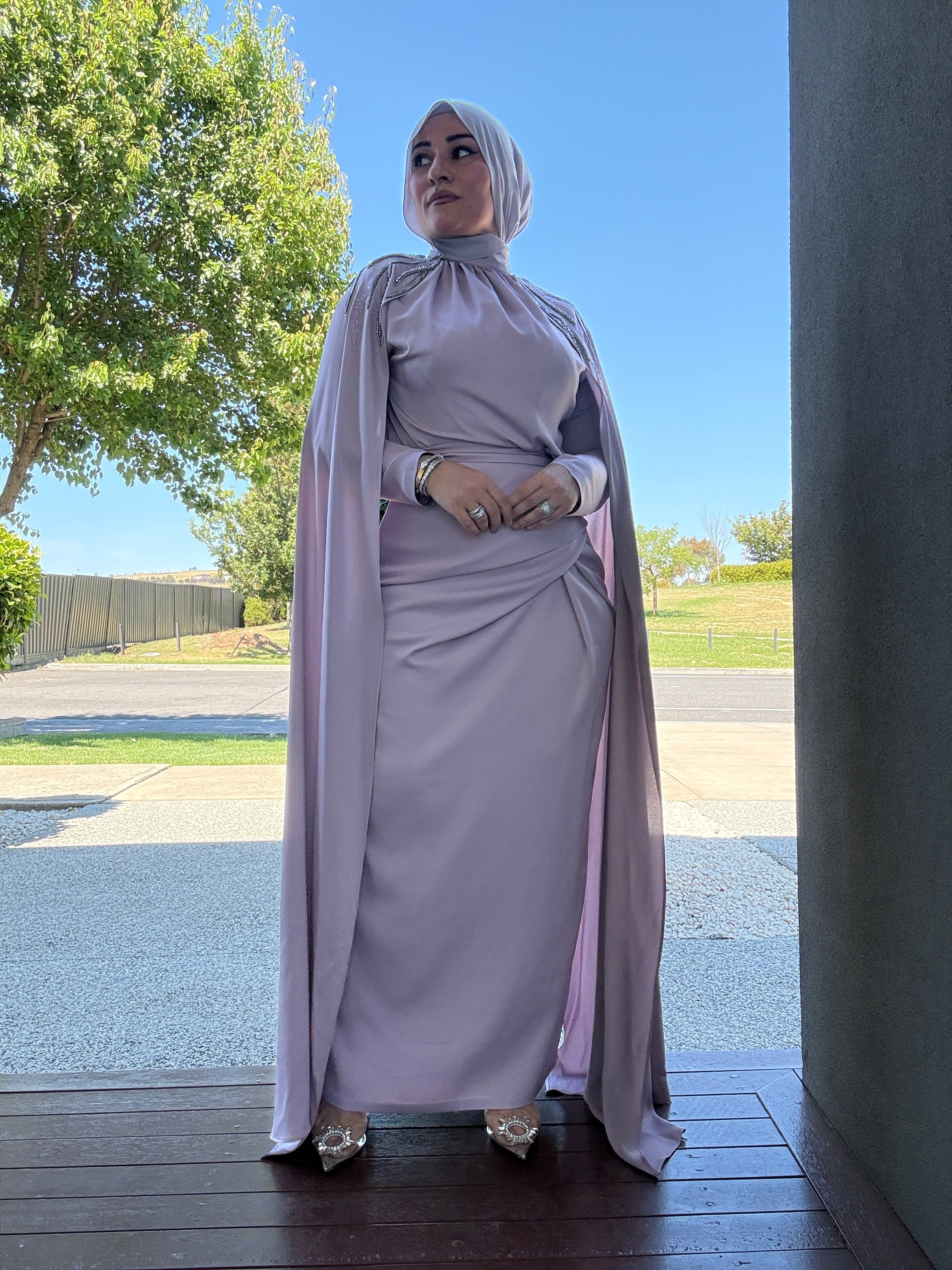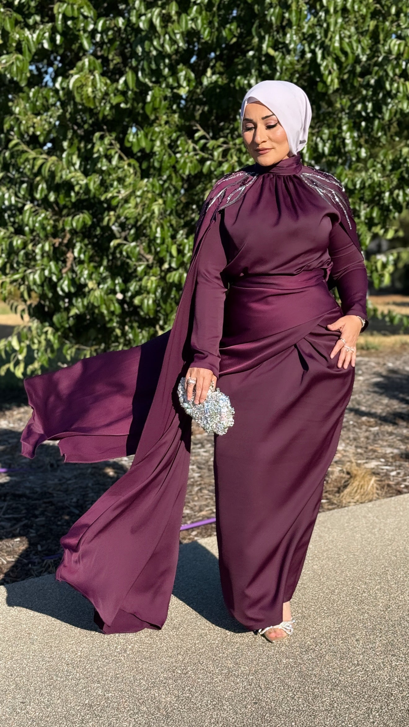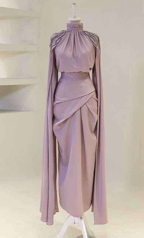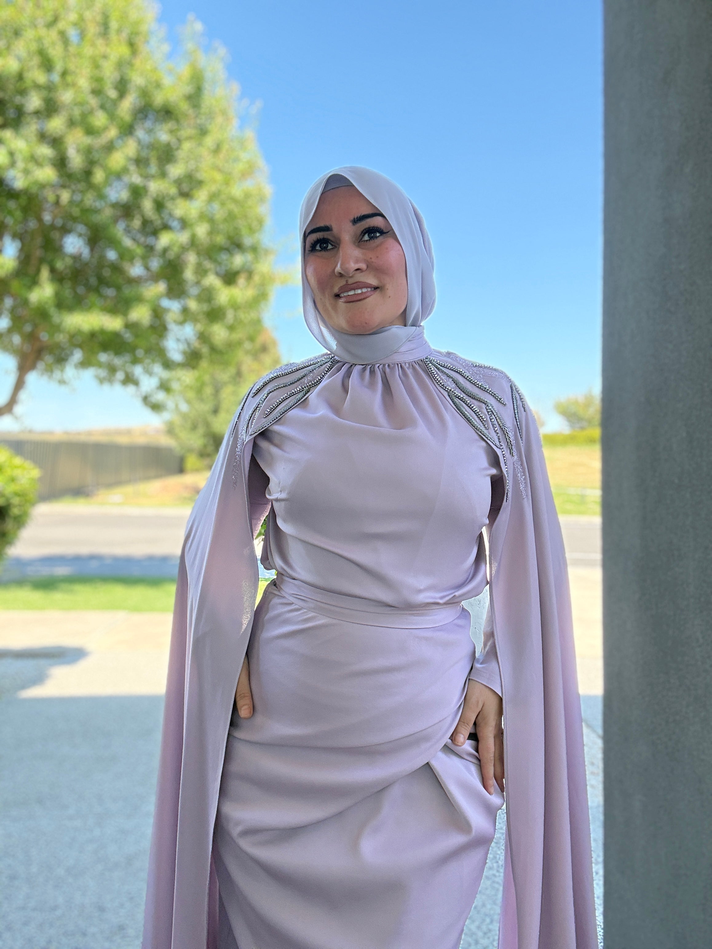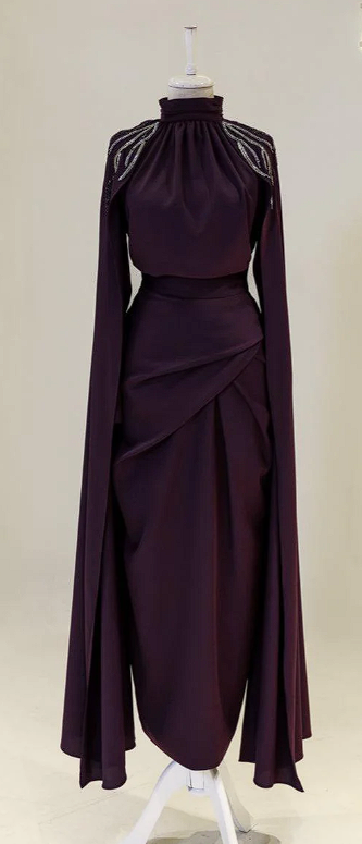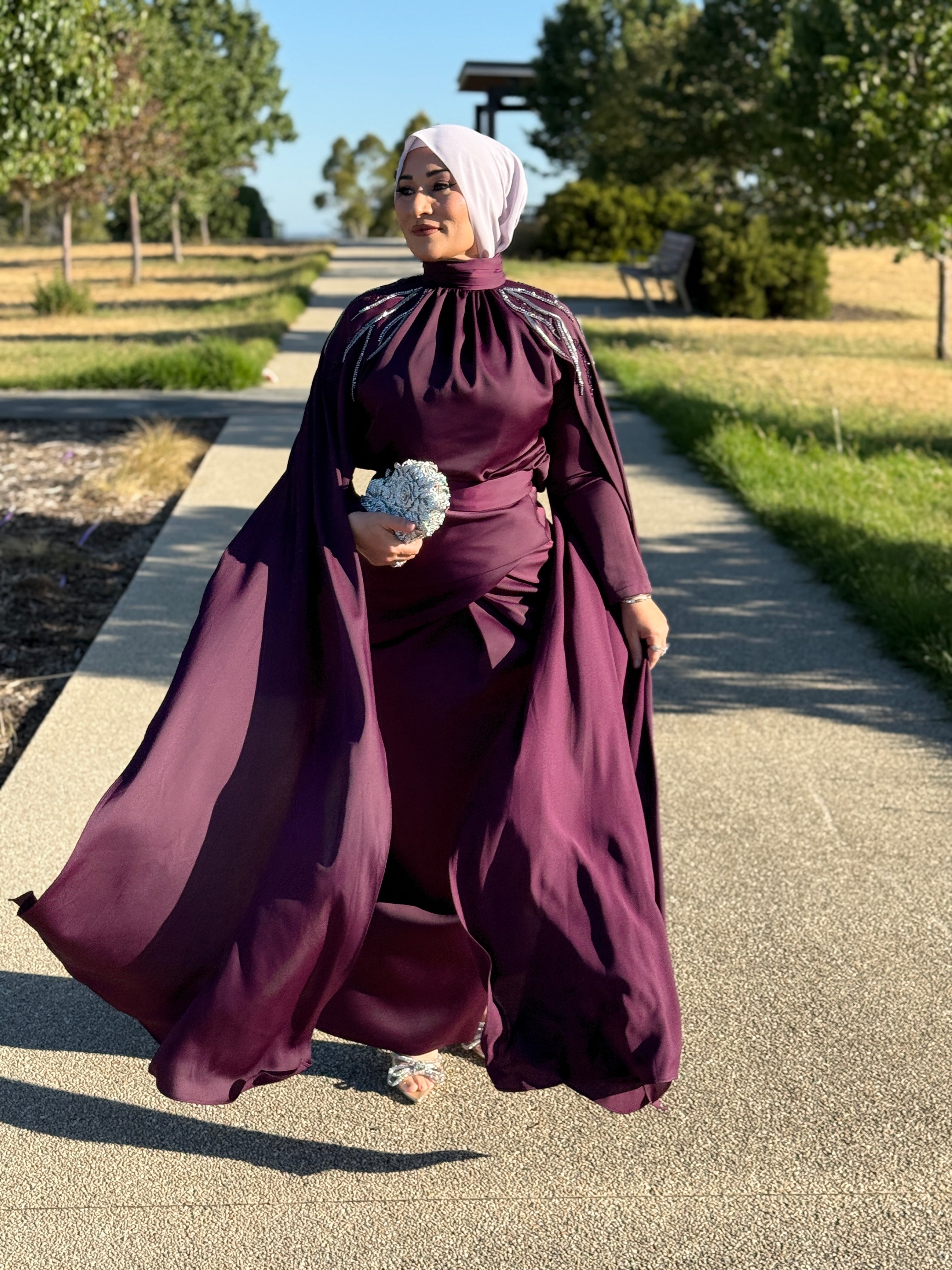 Description: The Orchid Dress is a stunning 2-piece skirt set. The set has a flattering waist, features a beautiful skirt design as well. The arms have a gorgeous detail that reach the floor and the set features beautiful bling shoulder details.