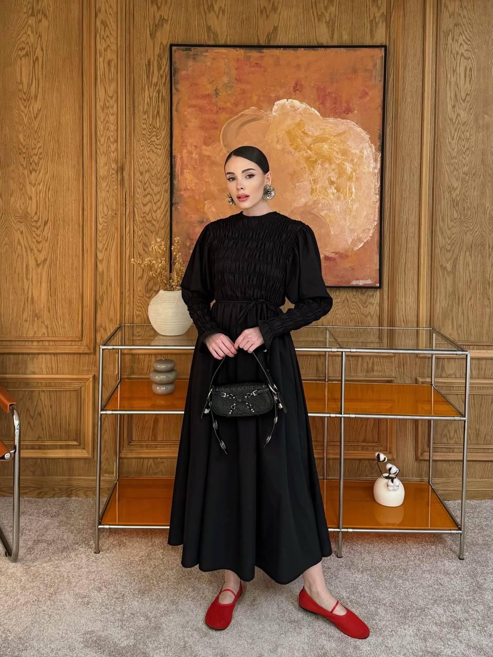 Description: The Patrice Dress is a stunning dress. It is a loose fit, has elastic cuff sleeves, has inner lining, comes with a belt and has stretch.