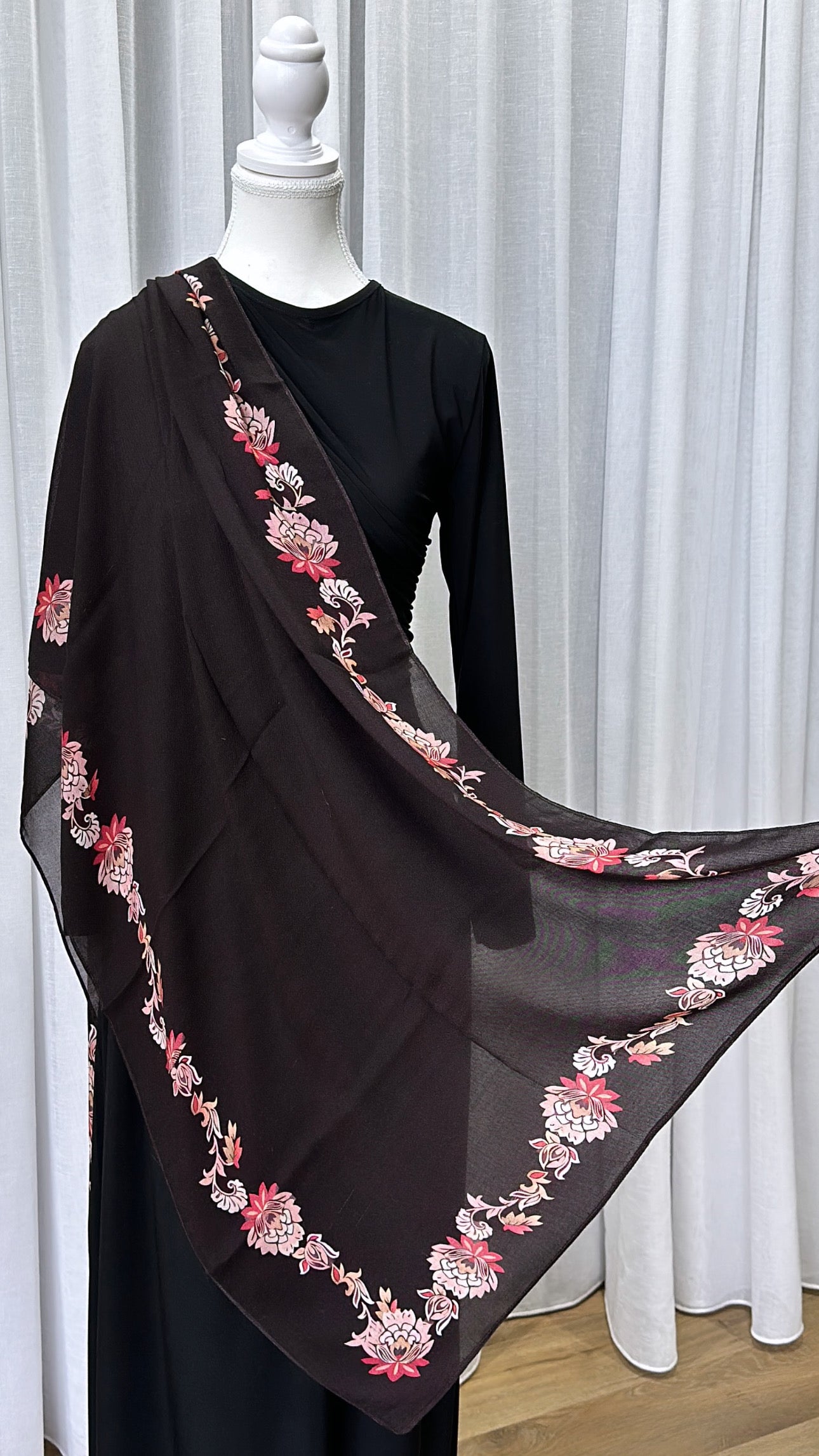 In the interests of hygiene, all of our accessories (including embroidered hijab caps, embroidered hijab/head bands, bridal scarves (hijabs), hijab pins and all jewellery) have a strict no refunds/exchange policy. Please ensure you have carefully read all product descriptions, fabric compositions and measurements to help you make an informed decision before placing your order. For additional product information please contact or email us.
