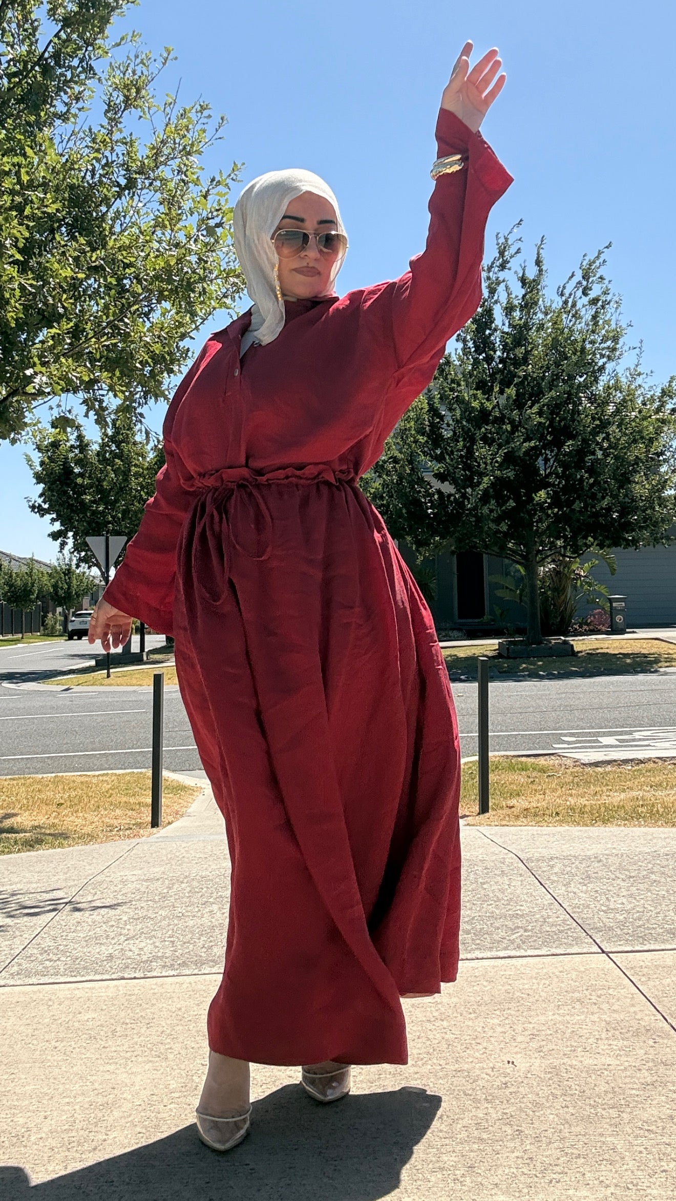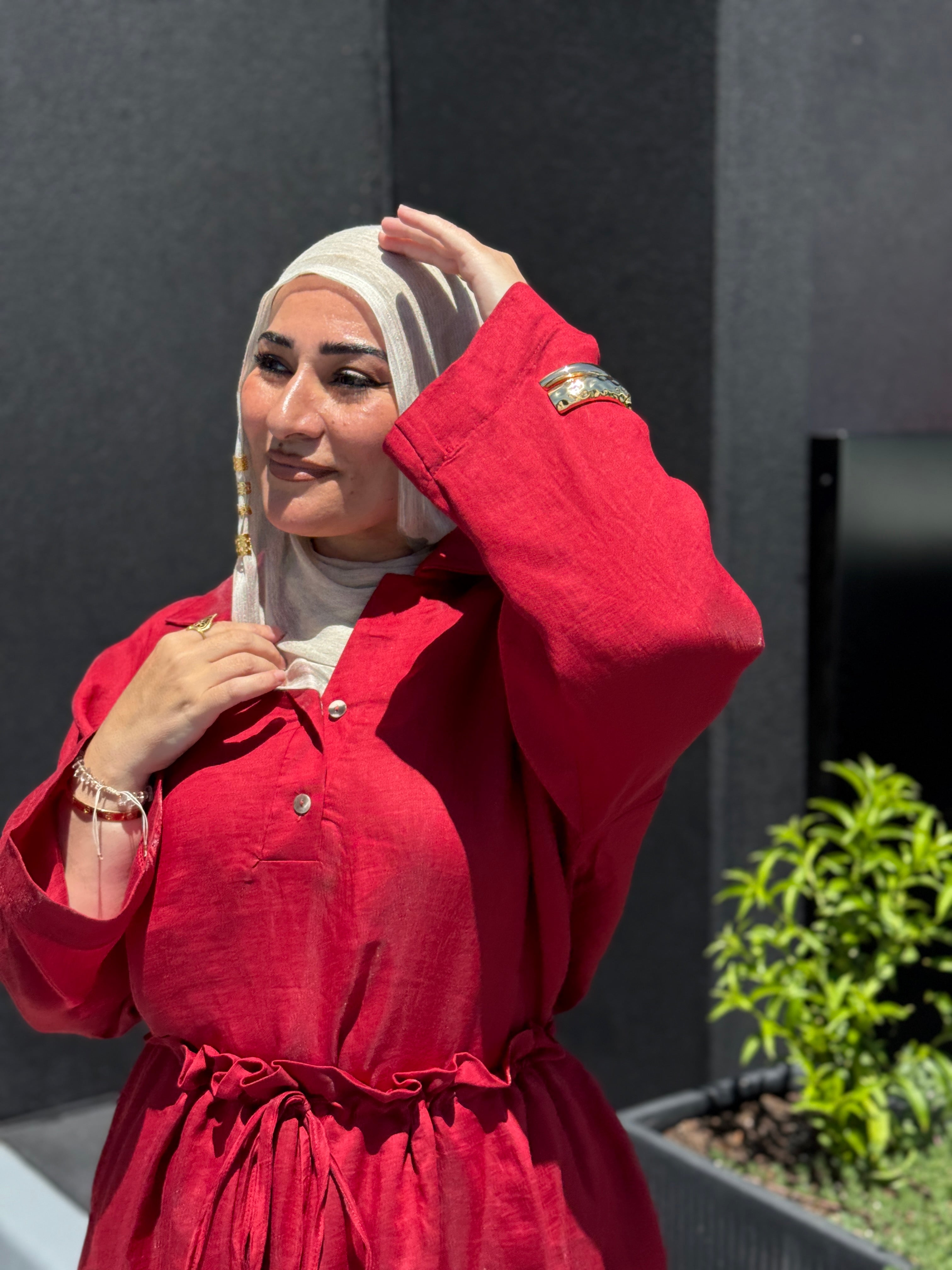 Description: The Red skirt is a stunning skirt. It is the matching skirt to the Red top. It has an elasticated, gathered waistband with a drawstring tie. The Fabric is lightweight and the skirt is relaxed with a flowy silhouette.