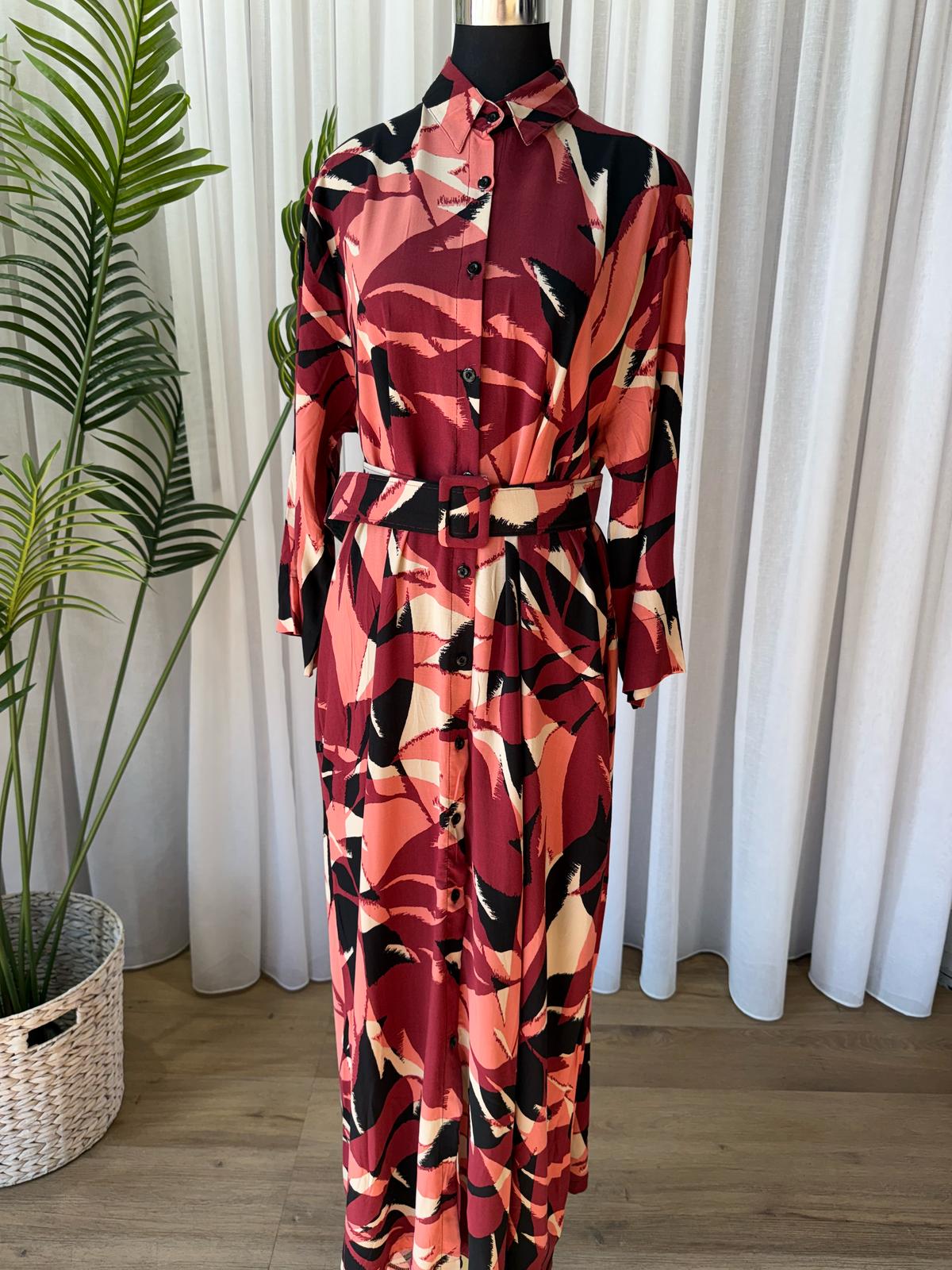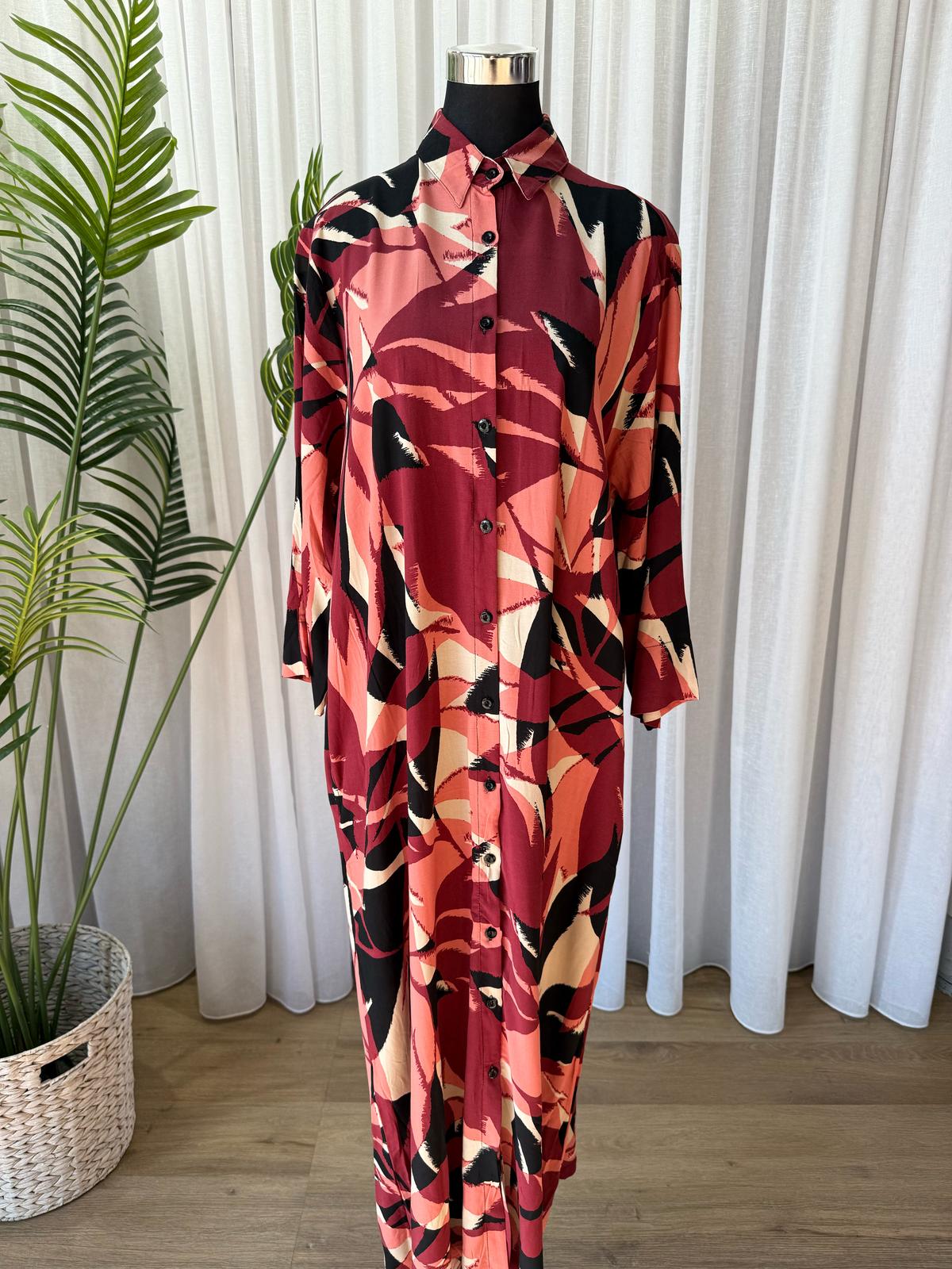 Description: The Retro Dress is a stunning dress. It is collared, lightweight, comes with a belt, full length buttons, and side pockets. It can be worn as a dress or a cardi.
