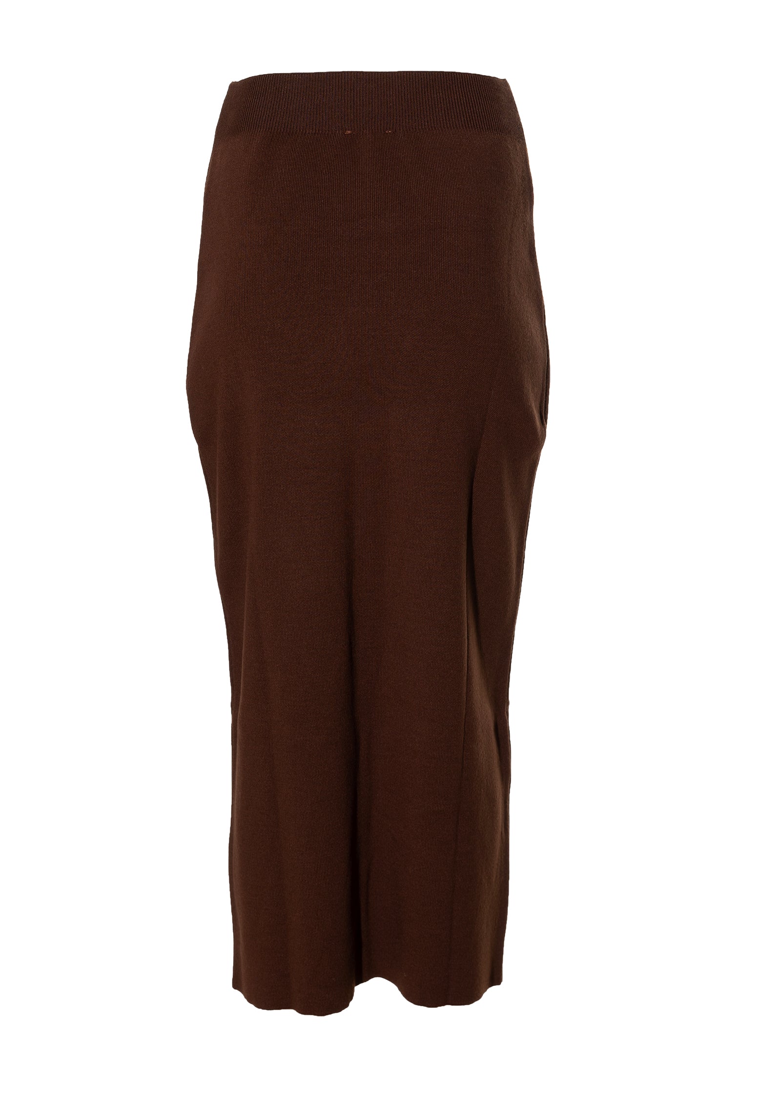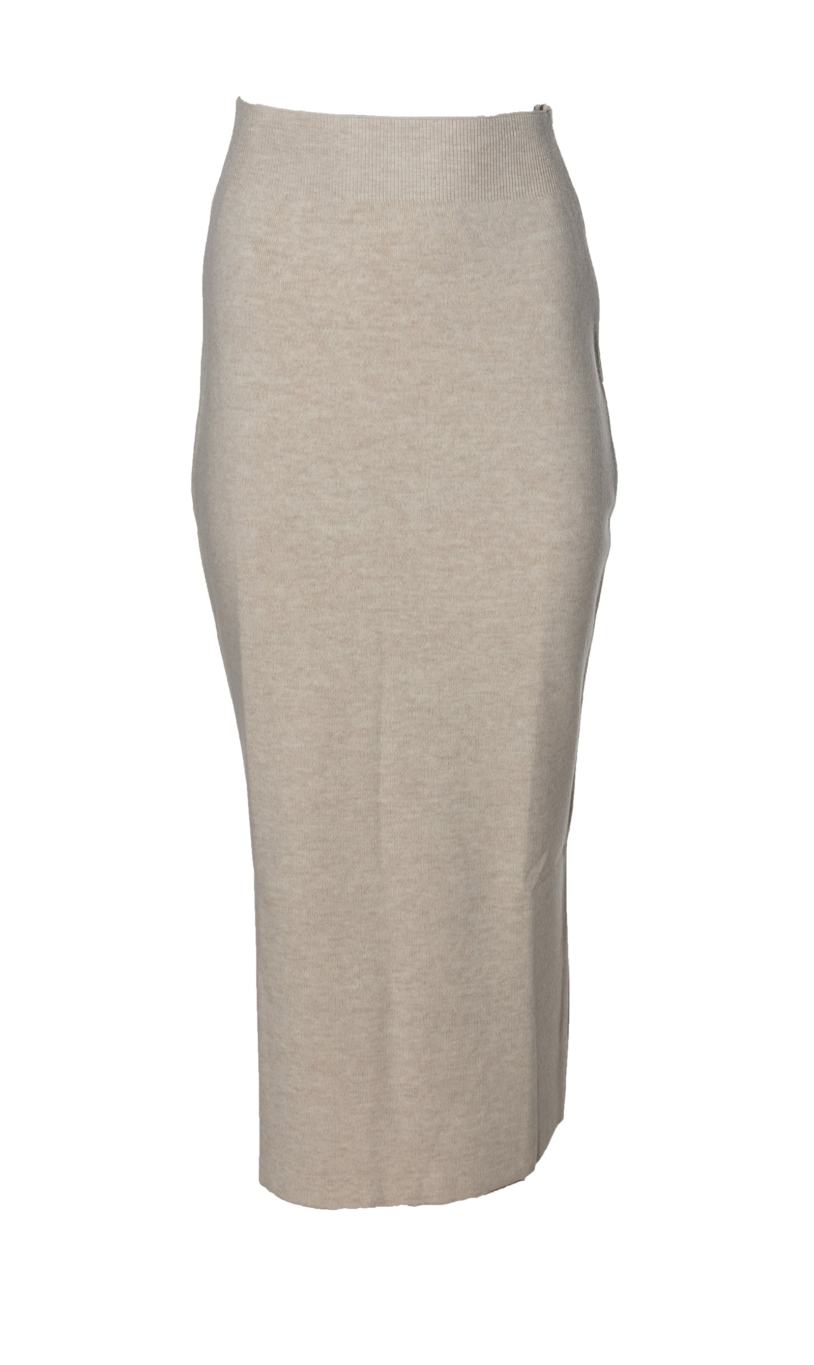 Description: The Ronda Skirt is a wool skirt. It is straight cut with an elastic waist. Slightly fitted.