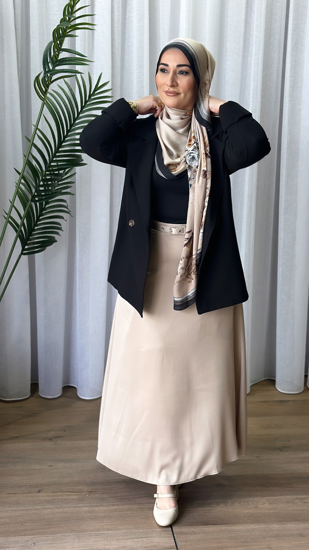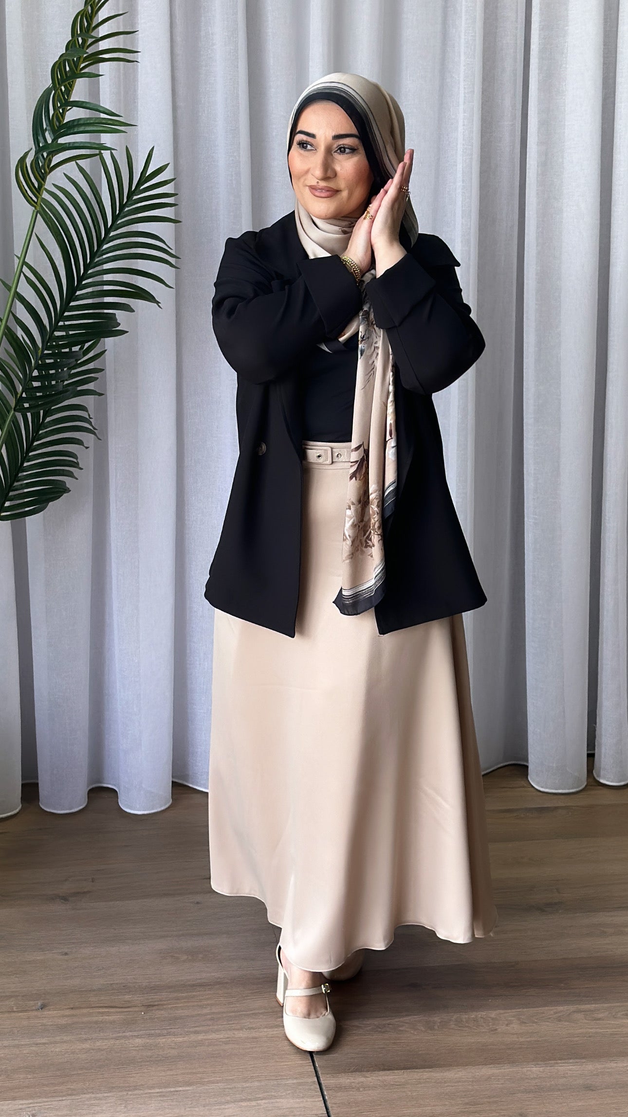 Description: The Satin Belt Skirt is a stunning skirt. It is satin with an a line cut, comes with a belt and has a side zip for easy access. The best part is that it has inner lining!
