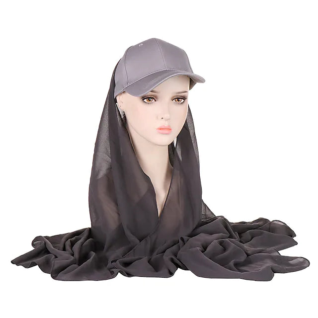 Description: Casual Musilm Women Summer Chiffon Hijab With Baseball Cap Solid Hijabs Ready To Wear Instant Sports Style Hijabs