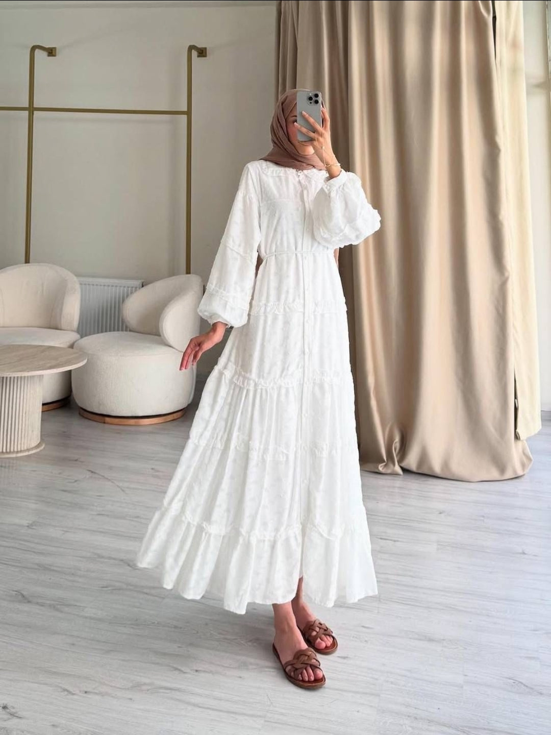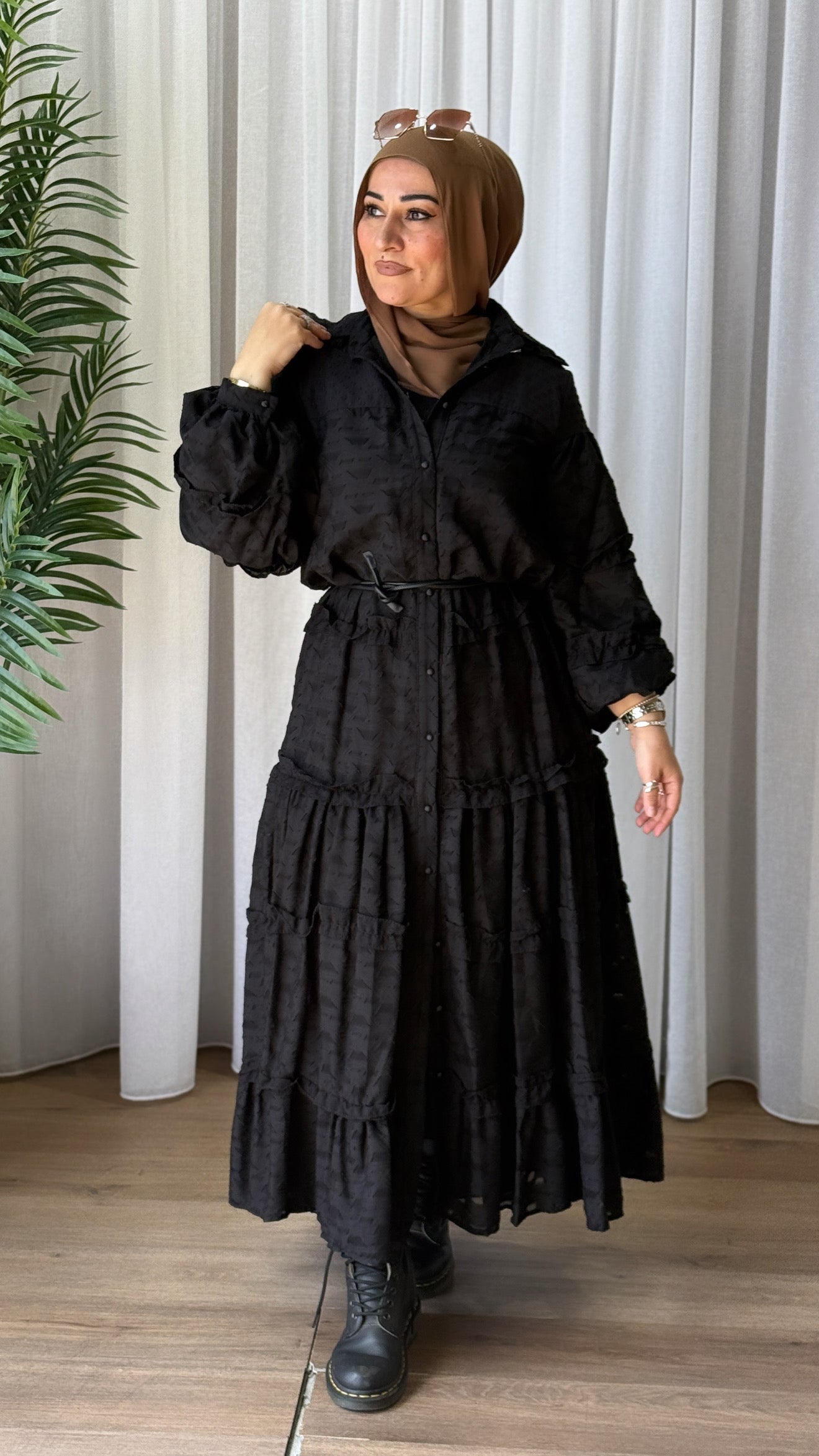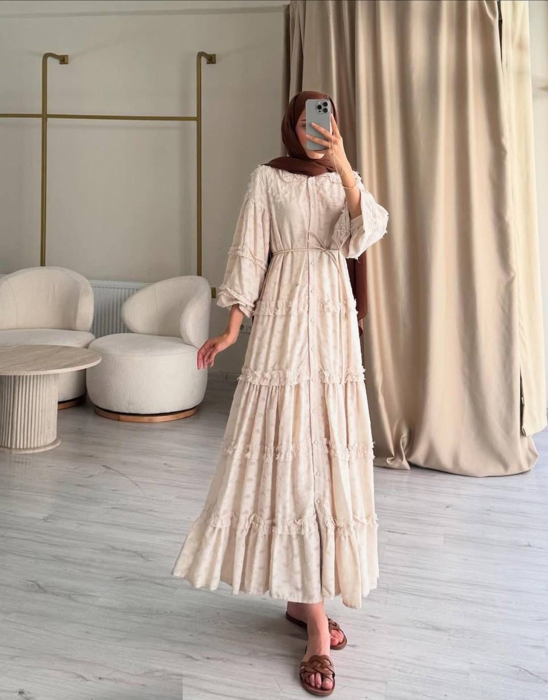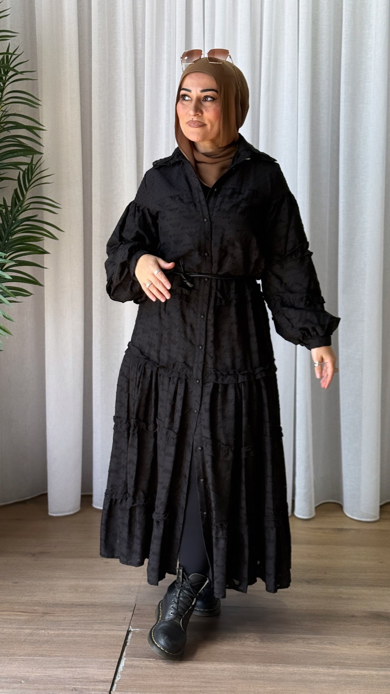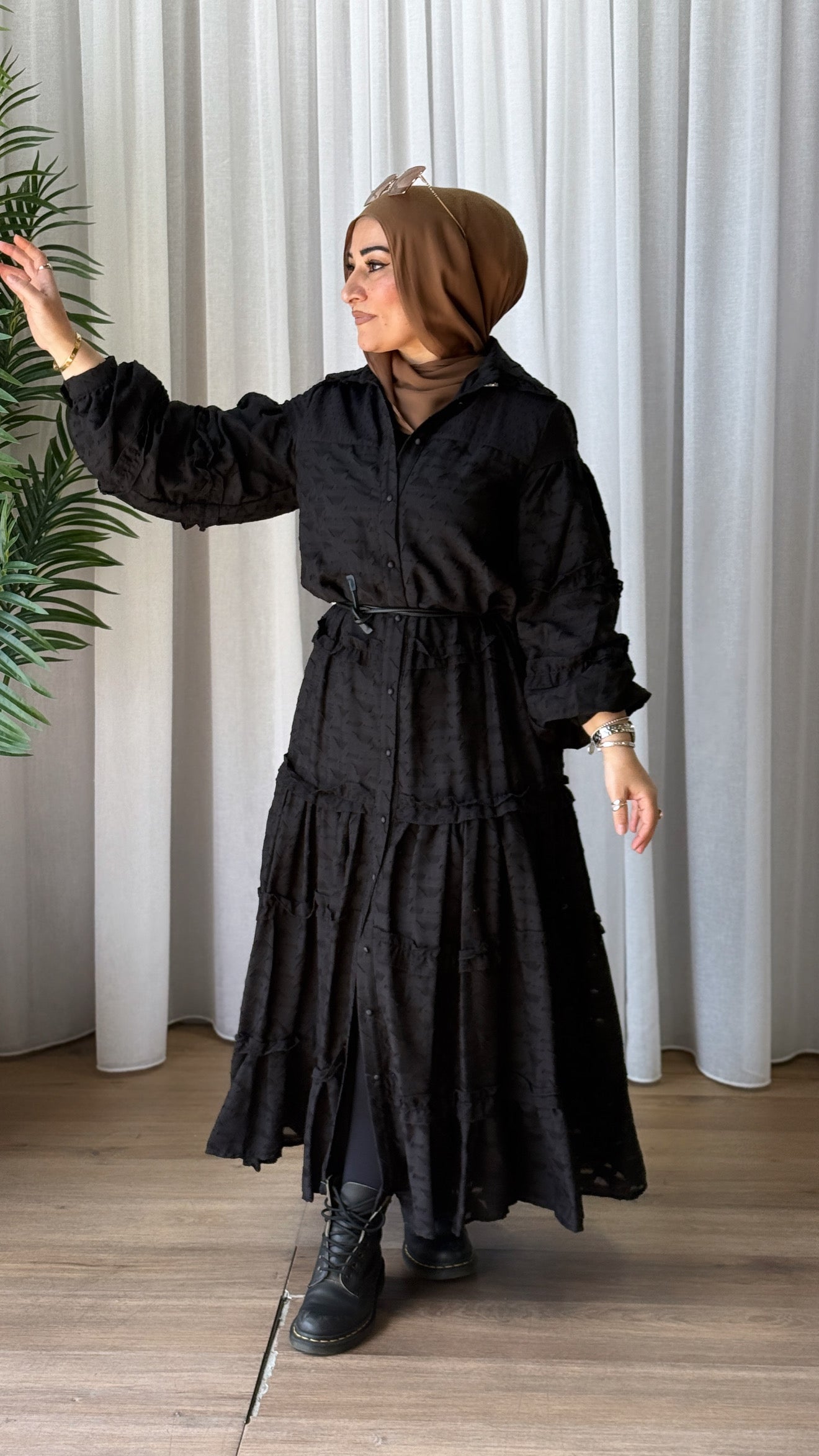 Description: The Sema Dress is Part of our Spring 25 collection. The dress is light weight but still breathable while protecting your modesty with full inner lining. You can wear the dress loose or add the stylish belt to bring the waist in.