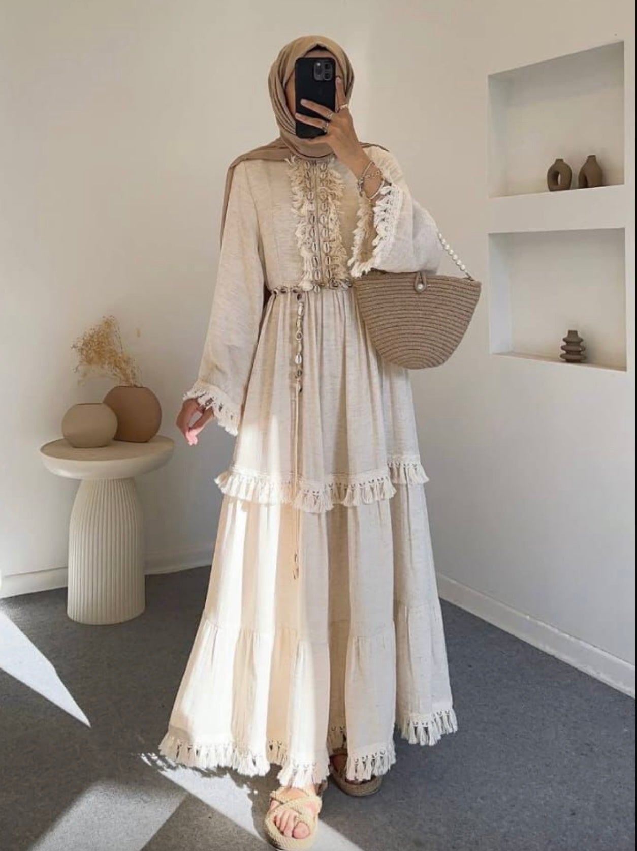 Description: The Shell Dress Is a Full Length Dress, Detailed with shells around it with a beautiful matching shell belt. The Material is Nice and Flowy Generous Make, Light Weight Material, linen material making it perfect for the warmer days.
