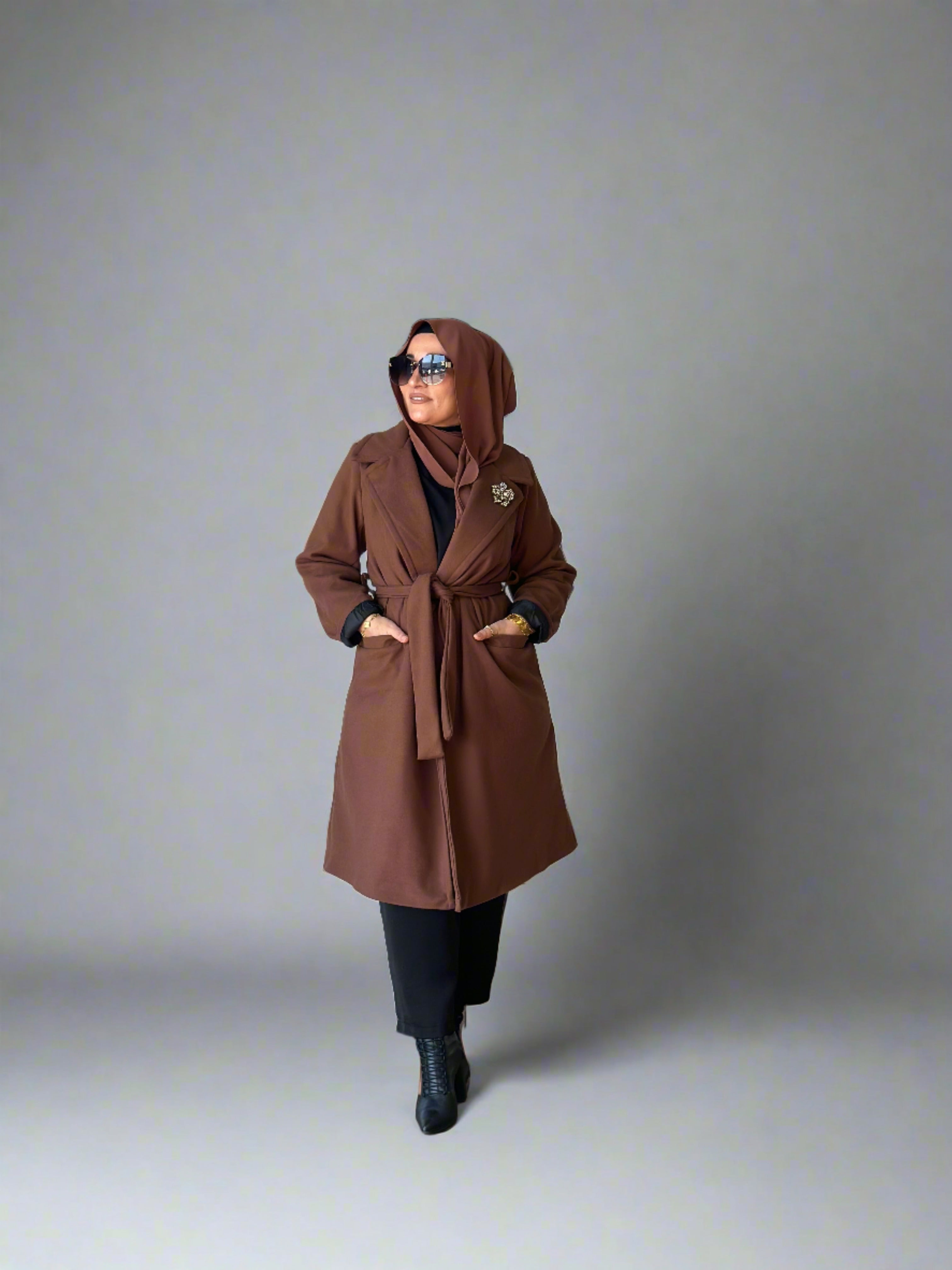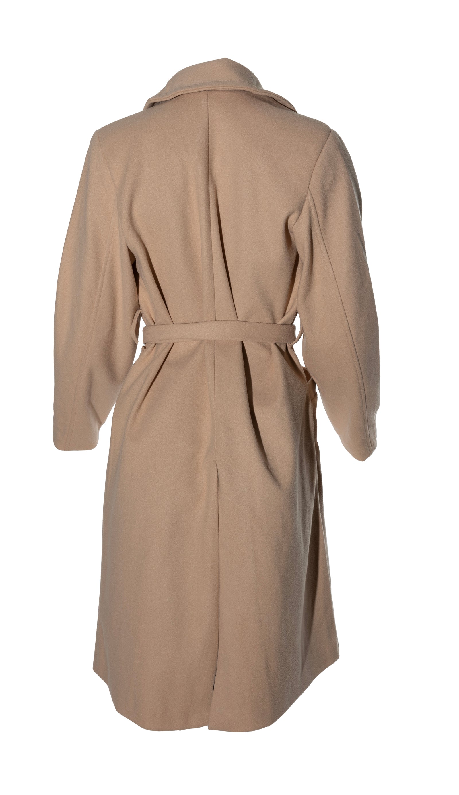 Description: A stylish coat for a night out. Perfect for layering. Has a waist tie and deep pockets, also a split in the back.