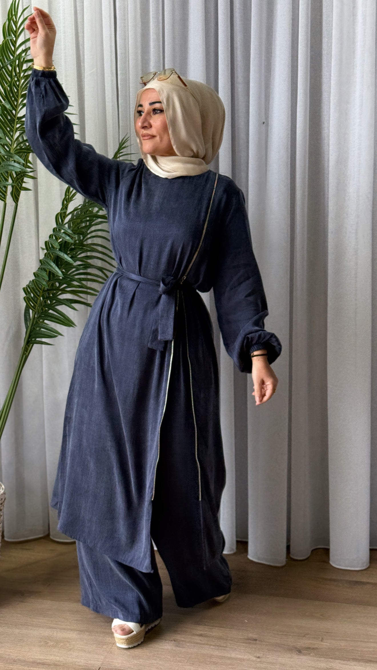 Description: The Suede Set Top is the matching top for the Suede Set Pants. It is a loose, breathable top which is very long. It has a full length zipper on the side which allows the user to zip it down to make it a dress or zip it up to make it more of a tunic. With the unique blend it has an amazing feel.