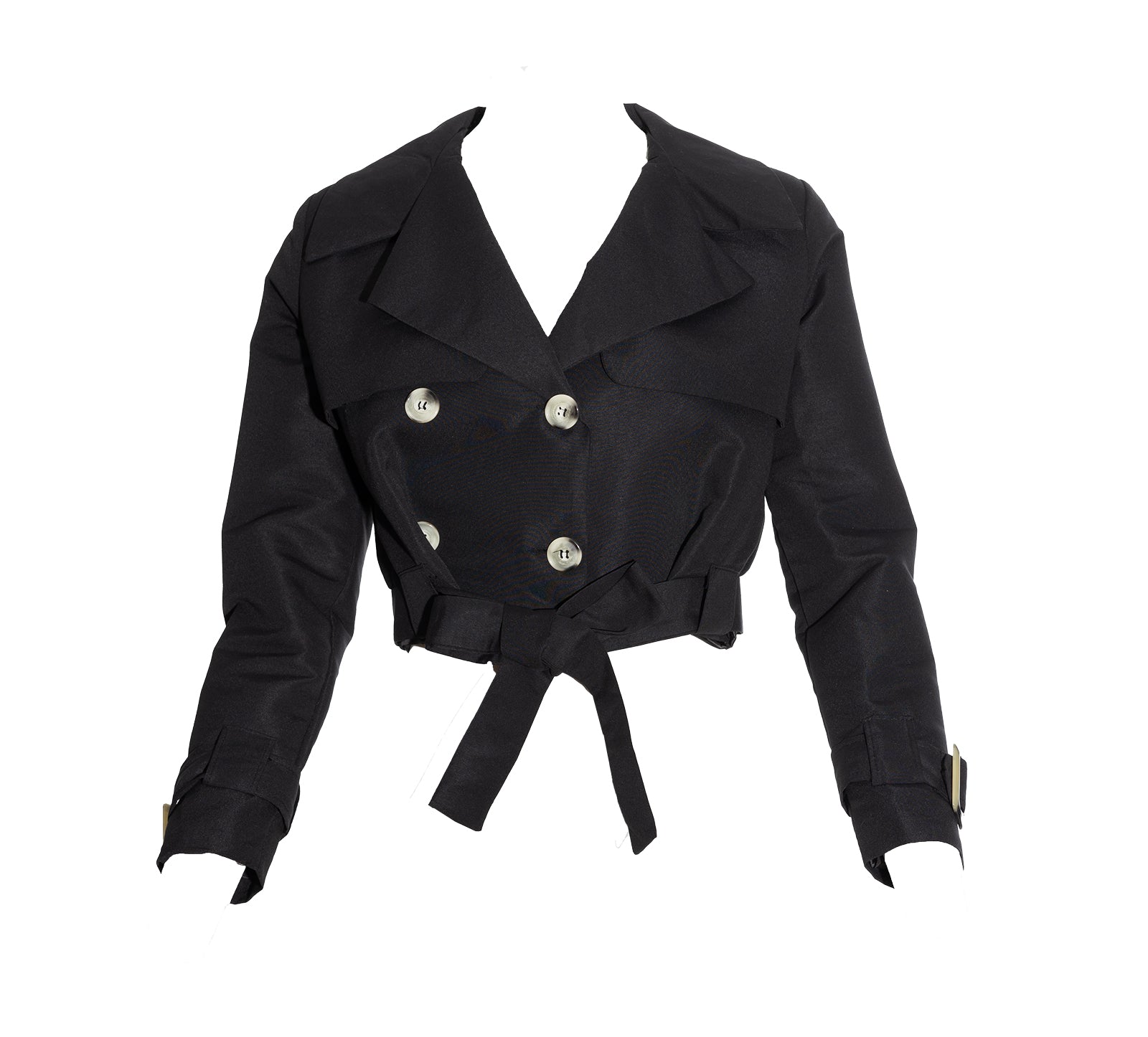 Description: The Suma Trench is a stunning trench matching the Suma Skirt. It is a cropped trench, full buttons, tie waist and wrist cuffs. It is collared and lightweight.