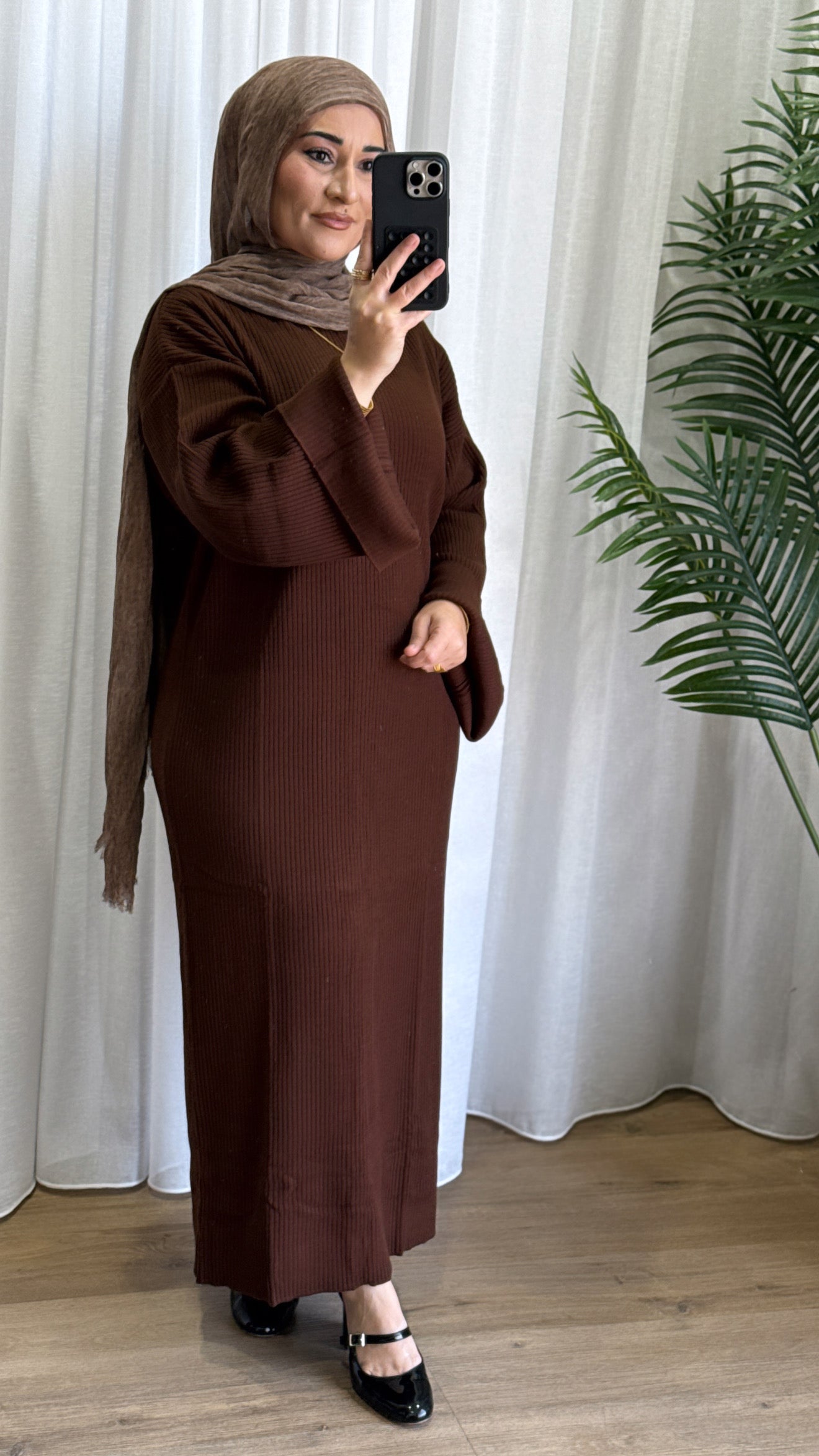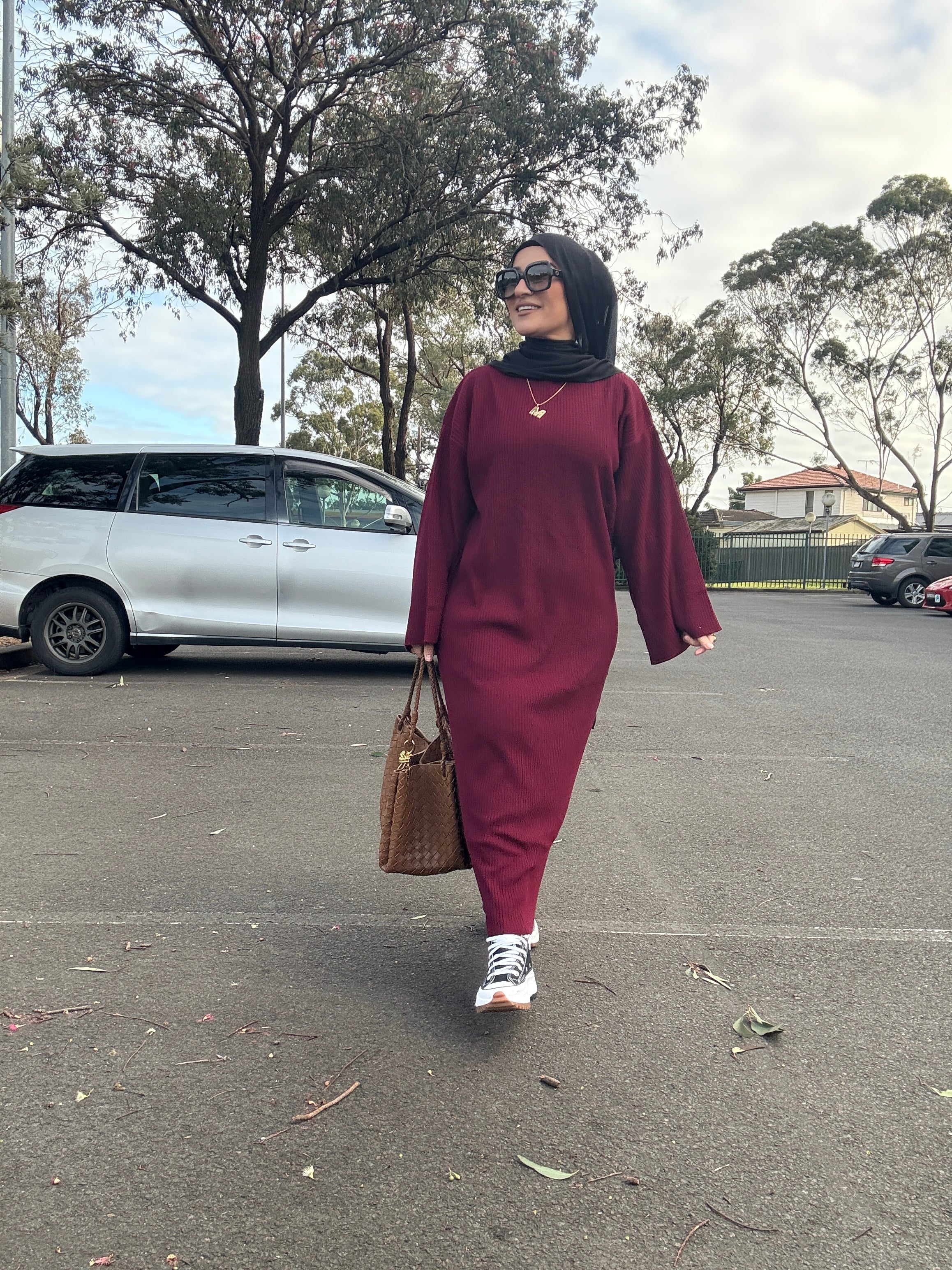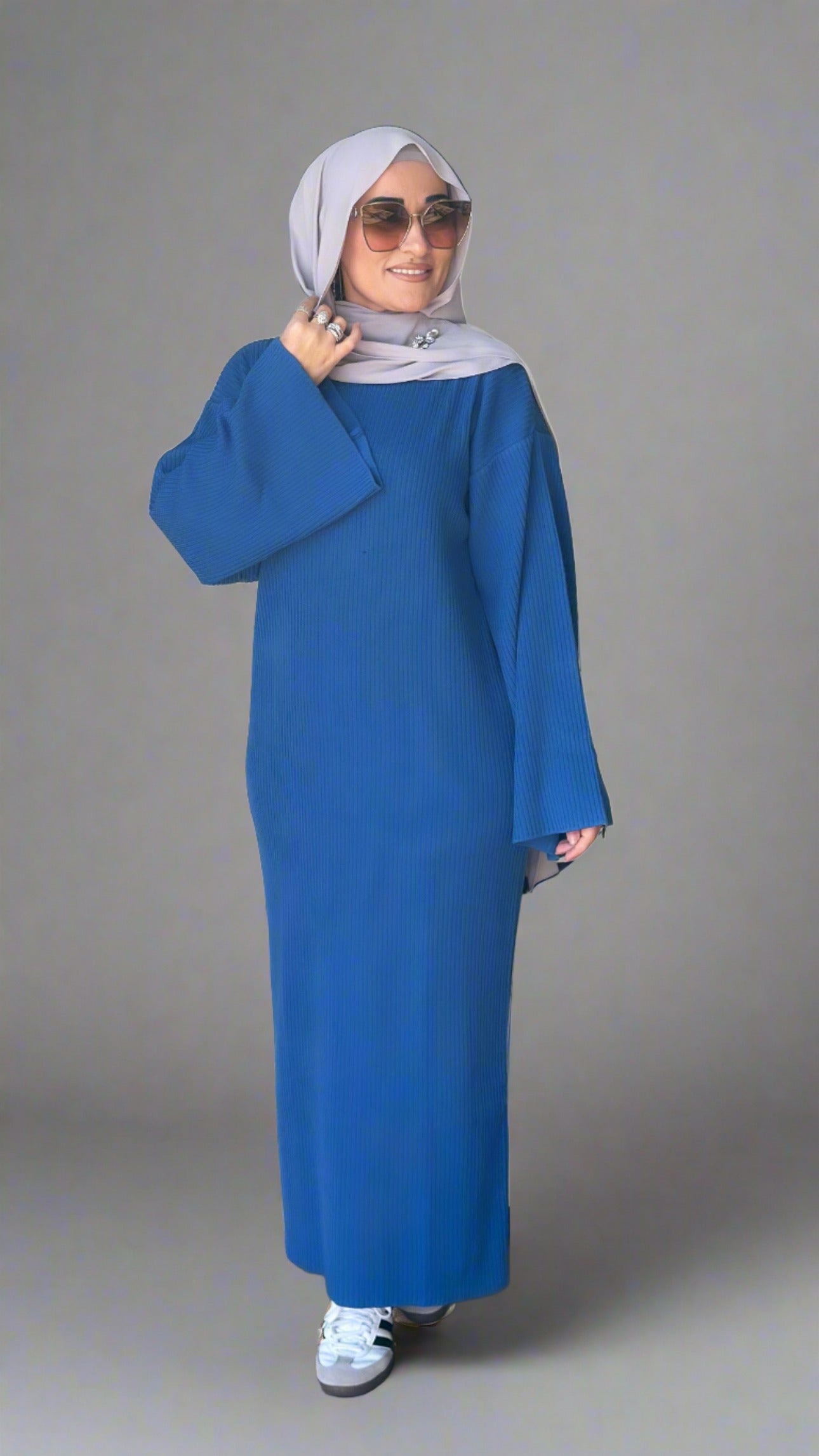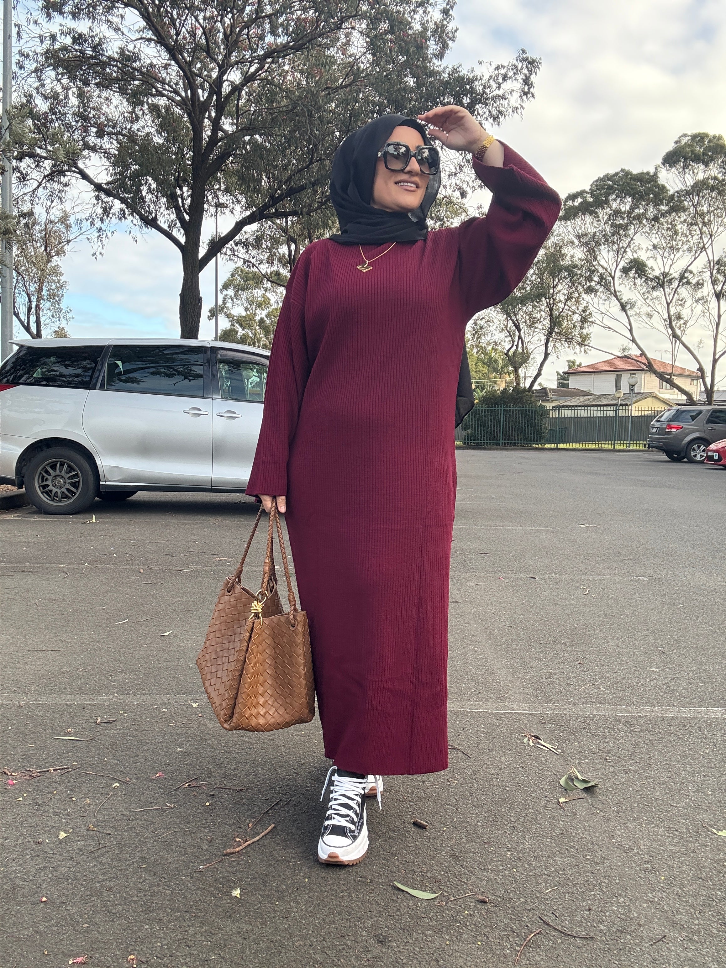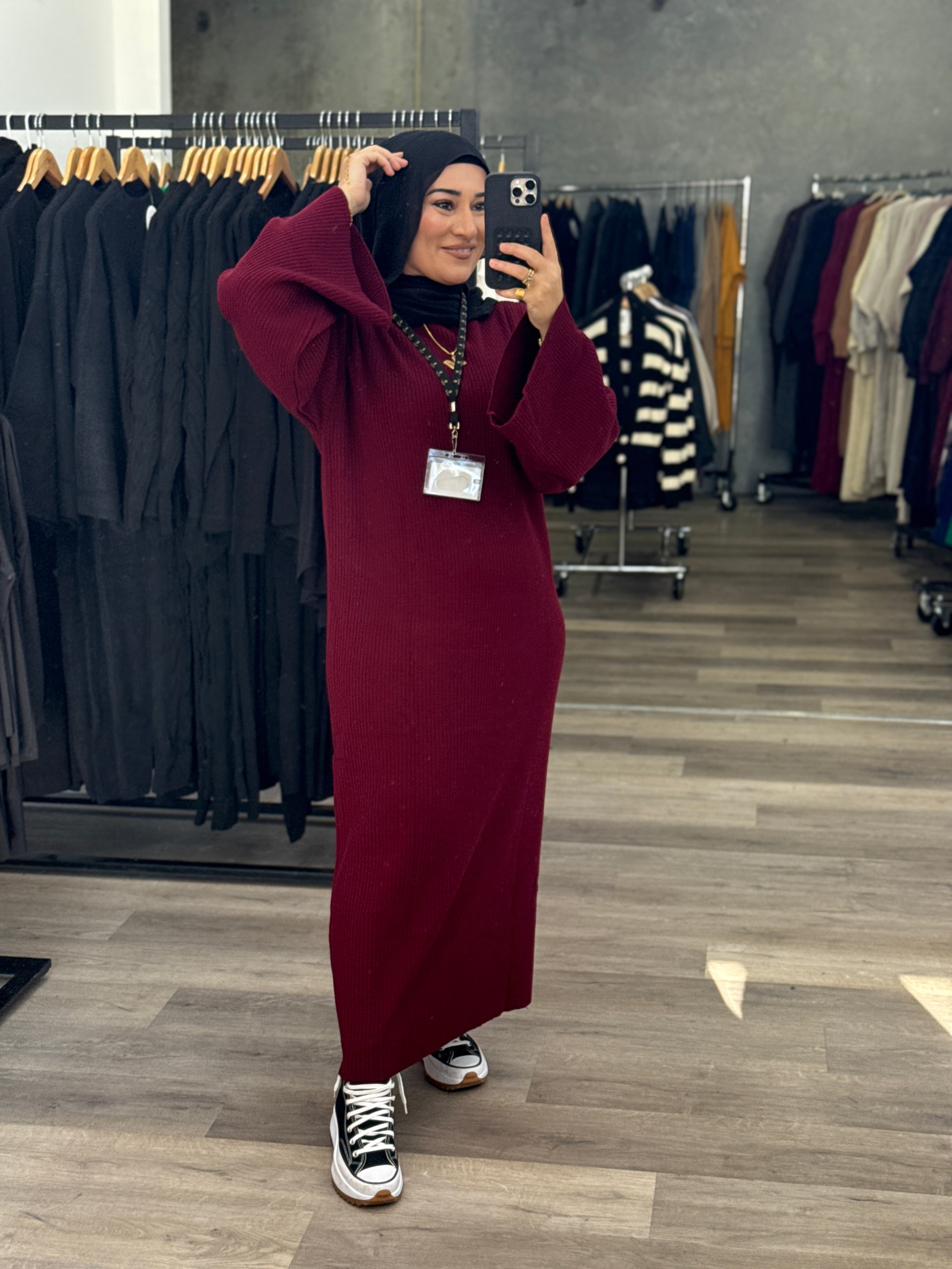 Description: The Tana Dress is a versatile dress. It can be dressed up or down. It is a ribbed design with flare sleeves and a straight fit.