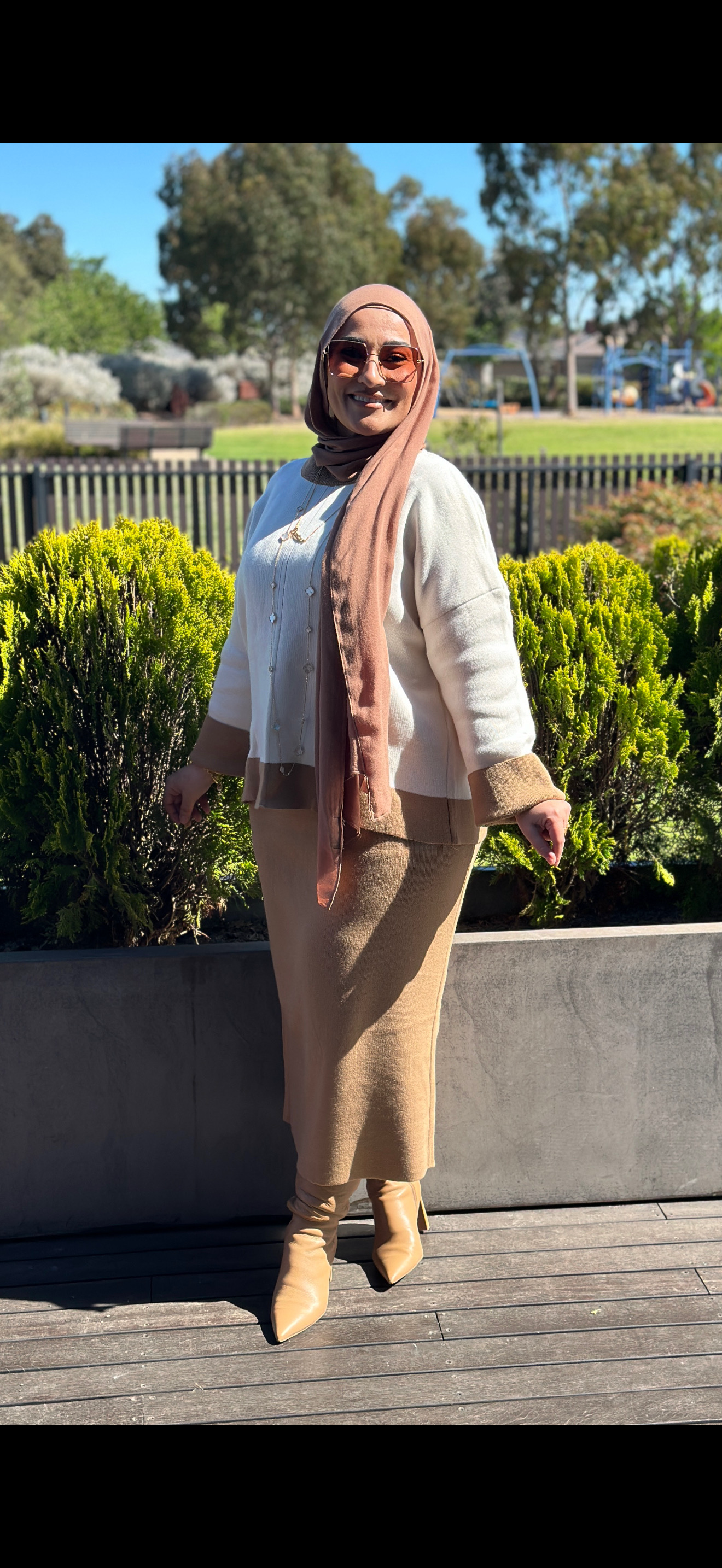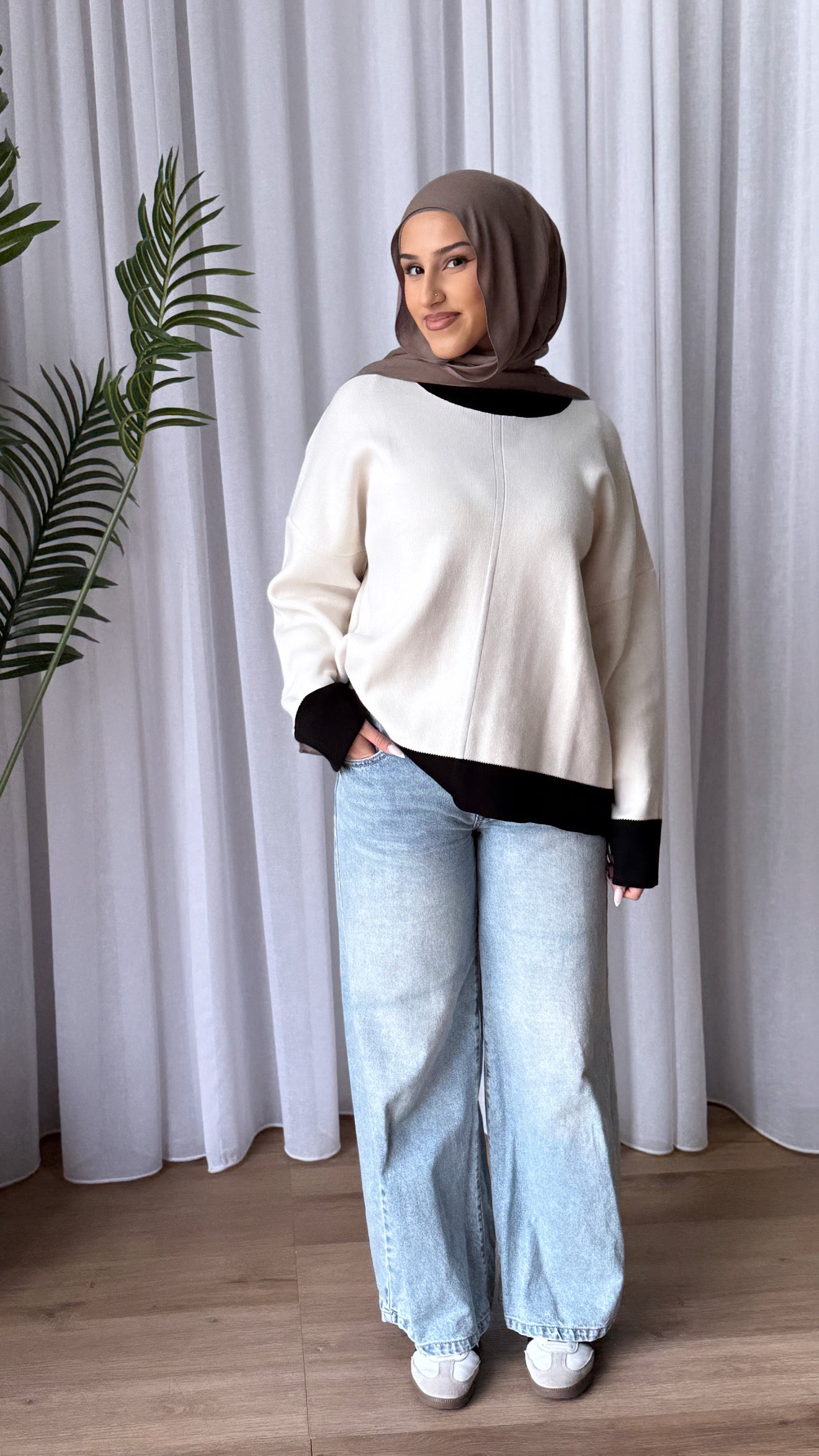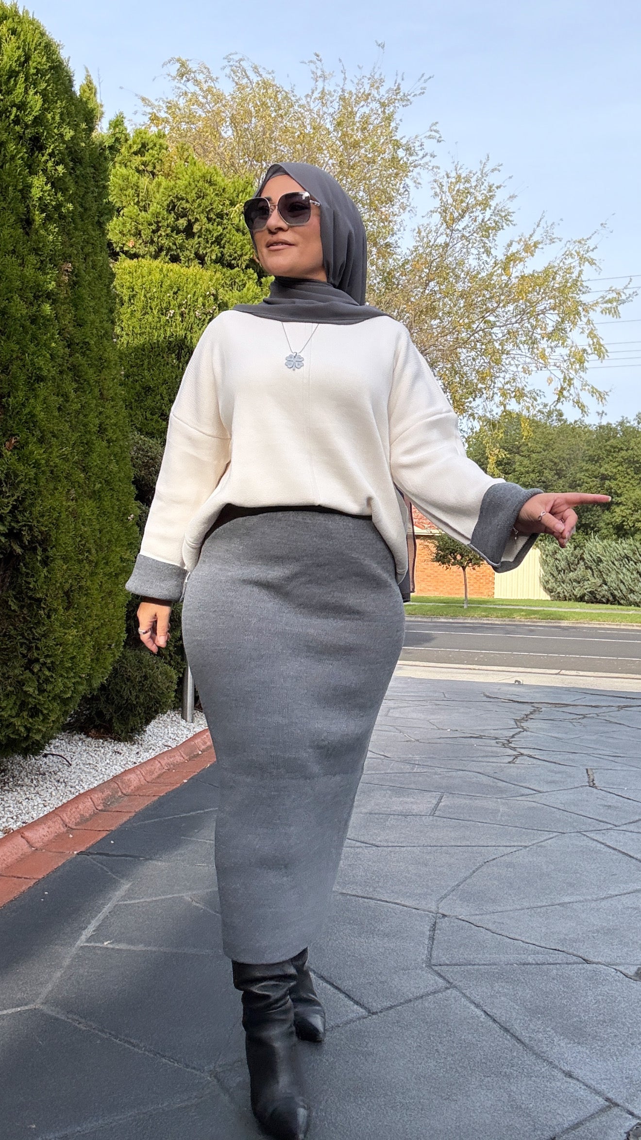 Description: The Yaren Set Top is the matching top for the Yaren Set Skirt. It is a comfy, drop shoulder, oversize top with flared sleeves. Every colour in the top is two tones for added style.