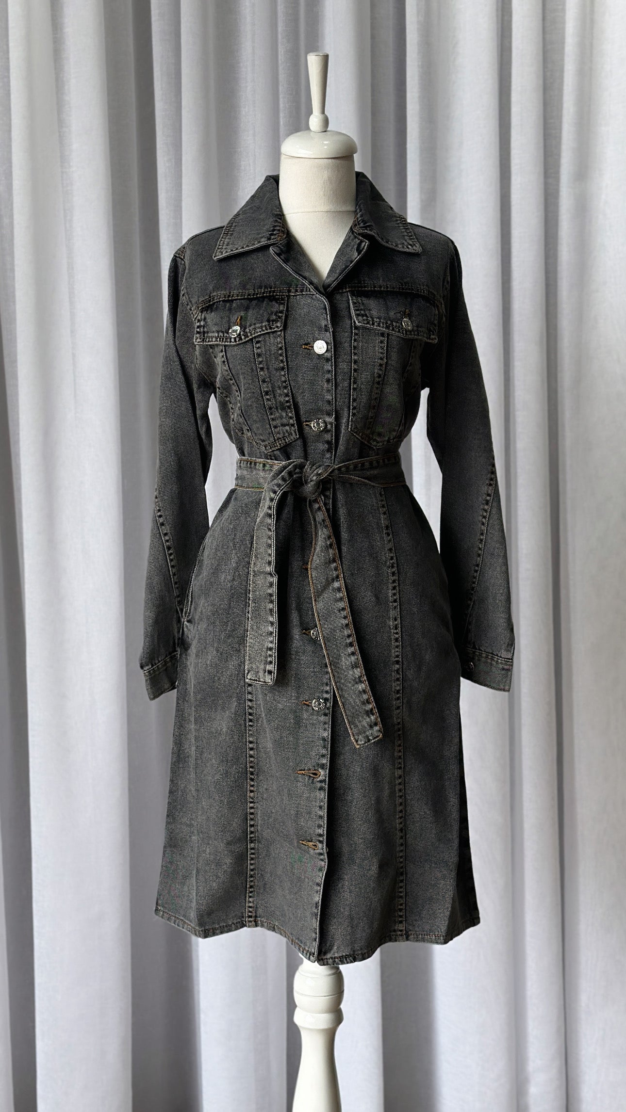 Description: The Yildiz Jacket is a stunning staple denim piece. This jacket has full length buttons, 2 chest pockets, belt, button cuff wrists and is collared.